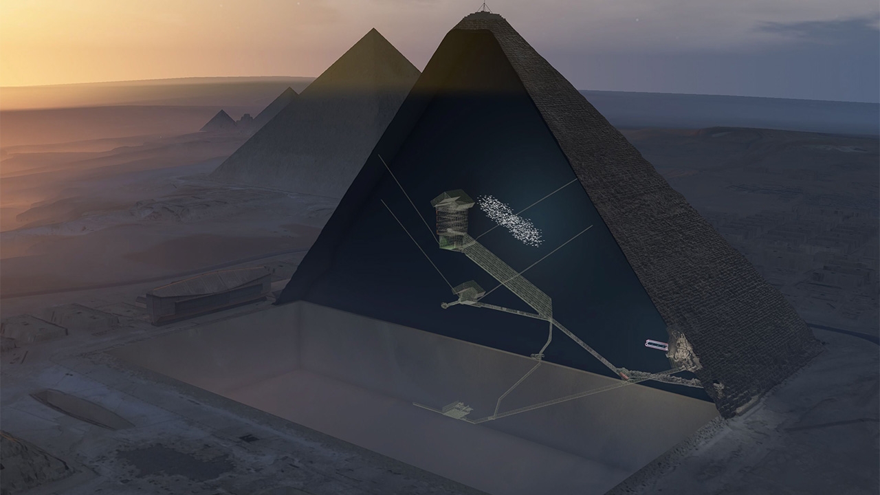 นักวิทยาศาสตร์เผยว่า หลังจากใช้วิธีการถ่ายภาพด้วยรังสีคอสมิก ซึ่งเป็นอนุภาคพลังงานสูงในอวกาศ โดยอนุภาคดังกล่าวสามารถทะลุทะลวงเข้าไปในหินพีระมิดได้ จากนั้นก็ใช้เครื่องตรวจจับหาสิ่งที่ซ่อนอยู่ พบว่าโครงสร้างภายในของพีระมิดขนาดมหึมามีช่องว่างลึกลับขนาดใหญ่ ความยาวอย่างน้อย 30 เมตร ตั้งอยู่เหนือห้องโถงยาวประมาณ 47 เมตร ที่รู้จักกันในชื่อ แกรนด์ แกลเลอรี (Grand Gallery) ซึ่งเป็นหนึ่งในทางเดินเชื่อมเข้าสู่ห้องของฟาโรห์ นับว่าเป็นโครงสร้างภายในที่พบเป็นครั้งแรกในมหาพีระมิดนับตั้งแต่ศตวรรษที่ 19 ก็ว่าได้