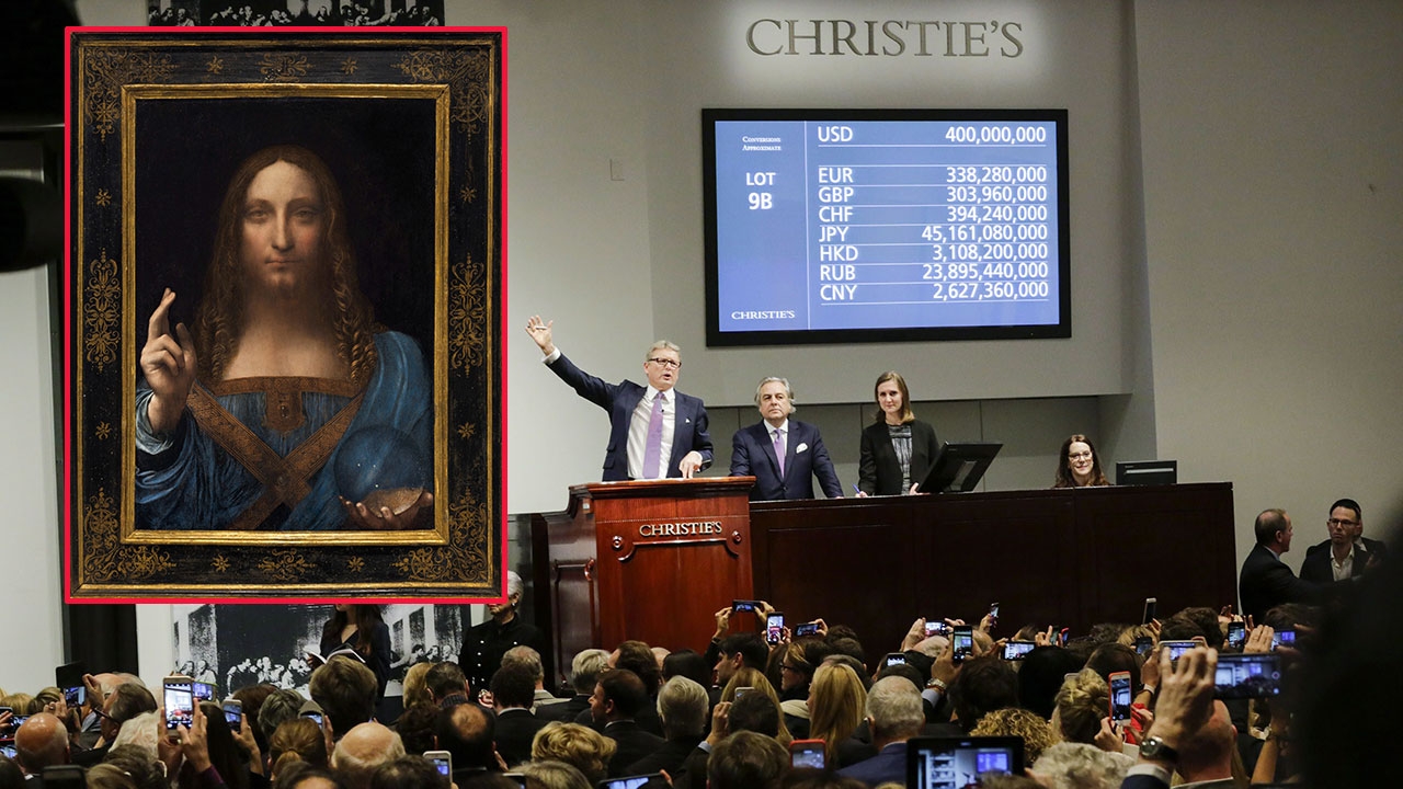 ภาพล้ำค่า “Salvator Mundi” หรือผู้ช่วยโลก อายุเกือบ 500 ปี วาดโดยอัจฉริยบุคคลชาวอิตาลี “ลีโอนาร์โด ดาวินชี” ถูกนำออกประมูลที่สถานประมูลคริสตีย์ ในนครนิวยอร์ก สหรัฐฯ ทำราคาสูงถึง 450.3 ล้านดอลลาร์ หรือประมาณ 15,750 ล้านบาท.
