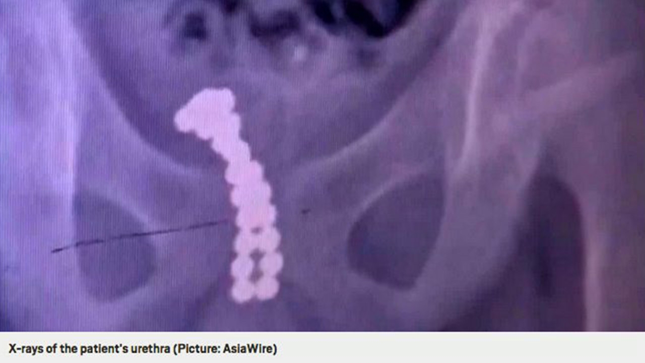 คุณหมอหวังชี้แจงว่า ลูกบัคบอลล์ซึ่งติดกันแน่นด้วยพลังแม่เหล็ก ได้ติดขัดขวางพื้นที่ของรูท่อปัสสาวะถึงสามในห้าส่วน ทำให้อวัยวะเพศบวมและเลือดออก