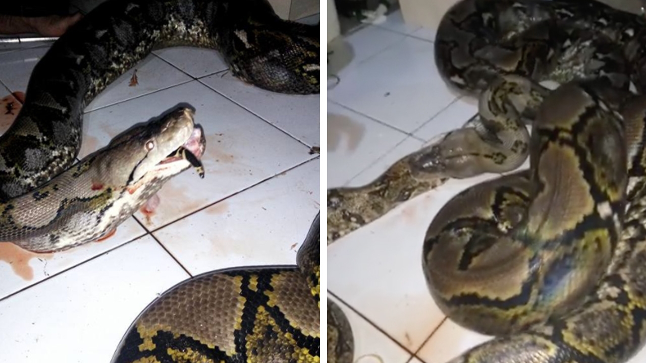 จากคลิปวิดีโอความยาวประมาณ 40 วินาที แสดงให้เห็นเหตุการณ์ขณะงูเหลือมตัวใหญ่ ที่มีกำลังมากกว่าเป็นฝ่ายชนะ มันค่อยๆ อ้าปากขย้อนงูเหลือมอีกตัวเข้าไปในปาก และกลืนเข้าไปเรื่อยๆ ซึ่งเหตุการณ์เกิดขึ้นภายในบ้าน และมีคนอัดคลิปไว้ ซึ่งมีชาวเน็ตแห่เข้าไปดูคลิปนาทีสุดสะพรึงที่ถูกเผยแพร่ผ่านทางเฟซบุ๊ก จนเกิดอาการขนพองสยองเกล้านี้กว่า 2.2 ล้านวิวแล้ว
