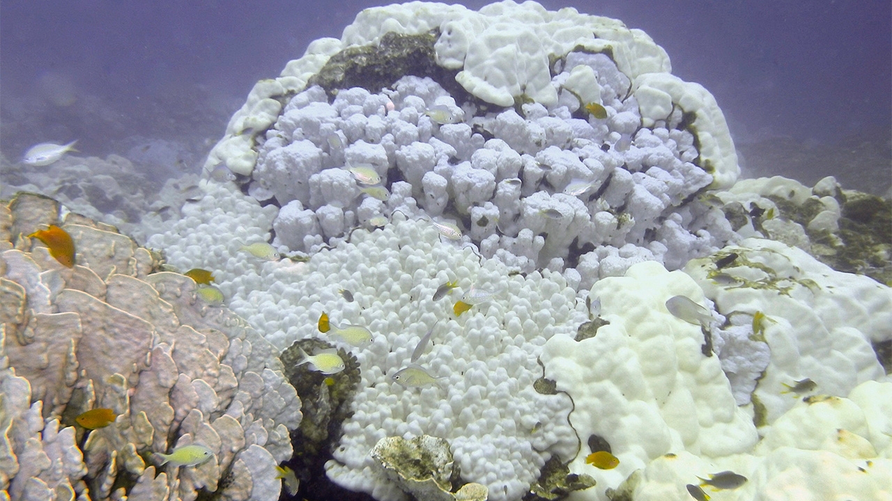 ทีมของนักวิทยาศาสตร์จากองค์การสหประชาชาติรายงานว่า พบการลดลงของระดับออกซิเจน และการฟอกสีอย่างรุนแรงของแนวปะการังหลายพื้นที่ทั่วโลก การฟอกสีดังกล่าวเกิดจากการที่น้ำทะเลอุ่นขึ้นและเข้ามากระทบกับแนวปะการังที่มีสีสันสดใส ซึ่งมีข้อมูลตั้งแต่ปี พ.ศ.2523 ว่า ปะการังเกิดการฟอกสีจากน้ำที่มีอุณหภูมิสูงกว่าปกติมาก แต่ในช่วงเวลานั้นอัตราการฟอกสีจะเกิดขึ้นในทุก 25-30 ปีแต่ในปี พ.ศ.2560 ปรากฏการณ์ดังกล่าวเกิดขึ้นไม่กี่ครั้งในทุกๆ 6 ปี