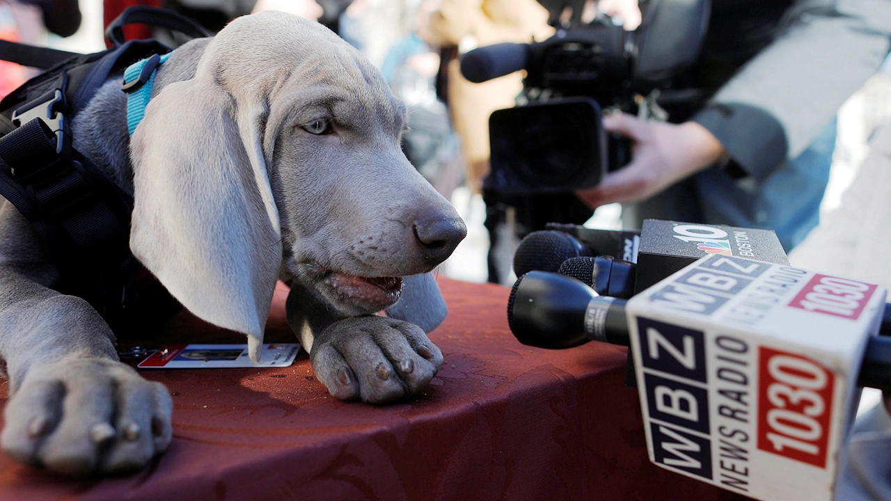“ไรลีย์” เจ้าตูบหูตกพันธุ์ “ไวมาราเนอร์” อายุแค่ 12 อาทิตย์ ที่กะลังทำหน้าเหมือนจะง่วงเหงา เศร้า ร้าวระบมน่ะ