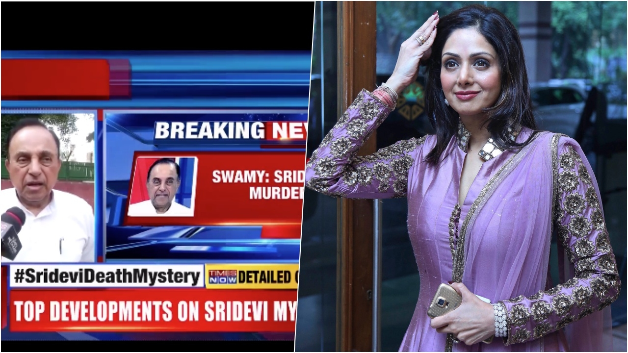 เมื่อ 27 ก.พ.61 เว็บไซต์ Times now ในอินเดีย รายงานว่า นายสุภรามาเนียน สวามี แกนนำพรรครัฐบาล ‘ภารติยะ ชนะตะ (บีเจพี)’ และสมาชิกสภาของอินเดีย ให้สัมภาษณ์ในรายการของสถานีโทรทัศน์ช่อง Times now กล่าวถึงการเสียชีวิตของ ศรีเทวี กาปูร์ หรือ‘ศรีเทวี’ซุปเปอร์สตาร์หญิงของอินเดีย ในวัย 54 ปี เมื่อคืนวันเสาร์ที่ 24 ก.พ.ที่ผ่านมา ว่า มีความน่าจะเป็นไปได้ ที่ศรีเทวีอาจถูก ‘ฆาตกรรม’ หลังจากผลชันสูตรศพของสำนักงานนิติเวชในดูไบ ออกมาว่าเธอเสียชีวิตจากการจมน้ำตายในอ่างอาบน้ำของโรงแรมในดูไบ หลังจากหมดสติ ไม่ใช่หัวใจวาย ตามที่เป็นข่าวก่อนหน้านี้ ขณะที่สื่อในดูไบยังเผยด้วยว่า มีการตรวจพบแอลกอฮอล์ในเลือด ซึ่งนั่นหมายถึง ศรีเทวี ดื่มเหล้าจนมึนเมา ก่อนจมน้ำเสียชีวิต
