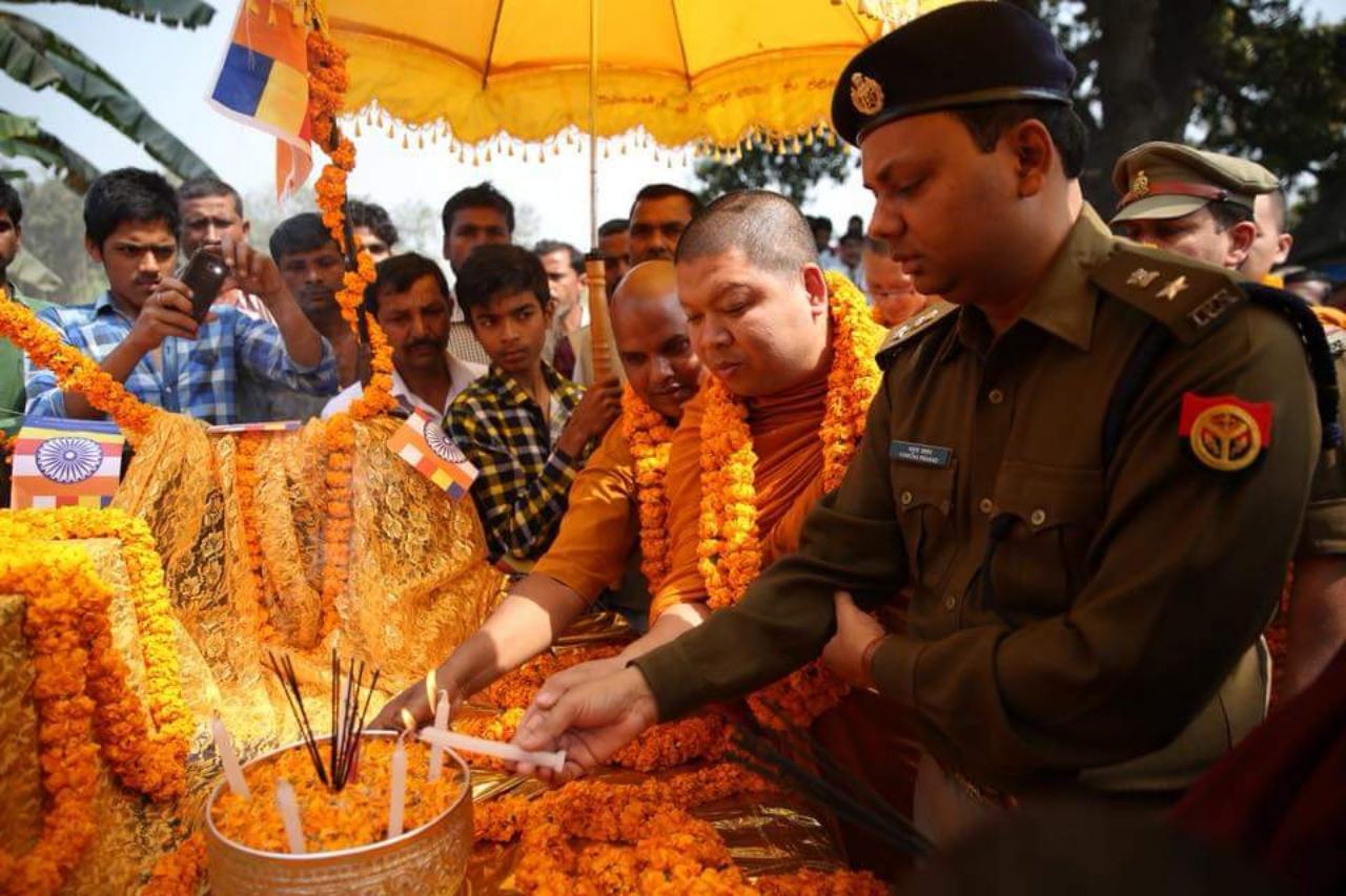 ผู้สื่อข่าวรายงานว่า เมื่อช่วงบ่ายวันที่ 13 มี.ค. (ตามเวลาท้องถิ่น) ชาวพุทธที่หมู่บ้าน Sirsiya ในเมืองกุสินารา (Kushinagar) รัฐอุตตรประเทศ (Uttar Pradesh) ประเทศอินเดีย พระครูนรนาถเจติยาภิรักษ์ (สมพงศ์) ผู้ปฏิบัติหน้าที่ดูแลวัดไทยกุสินาราเฉลิมราชย์ พร้อมด้วยคณะพระสงฆ์นานาชาติ ได้เดินทางไปร่วมงานฉลองวันคล้ายวันประสูติของพระเจ้าอโศกมหาราช พระราชาผู้ทรงธรรม ผู้มีคุณูปการต่อพระพุทธศาสนาอย่างมาก