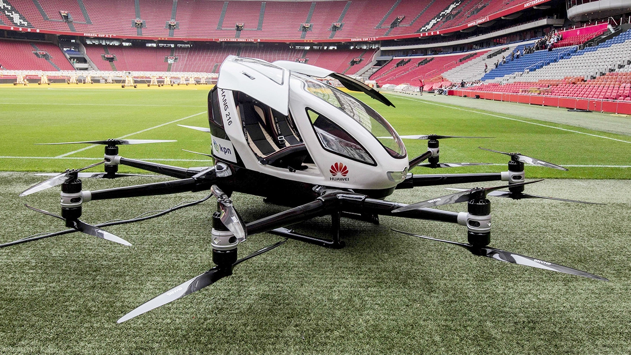โดรนขับเคลื่อนอัตโนมัติด้วยระบบมอเตอร์ไฟฟ้าชื่ออีฮาง 216 AAV (EHang 216 AAV) ซึ่งพัฒนาขึ้นโดยบริษัทหัวเหว่ยและบริษัทด้านโทรคมนาคมเคพีเอ็น จอดอยู่บนสนามอัมสเตอร์ดัม อารีนา ในกรุงอัมสเตอร์ดัม ประเทศเนเธอร์แลนด์ โดรนลำนี้บรรทุกผู้โดยสารได้แค่ 1 คนพร้อมกับสัมภาระขนาดเล็กๆ ในแบบถือหรือกระเป๋าเดินทาง โดยสามารถรับน้ำหนักทั้งหมดได้เพียง 100 กิโลกรัมเท่านั้น.