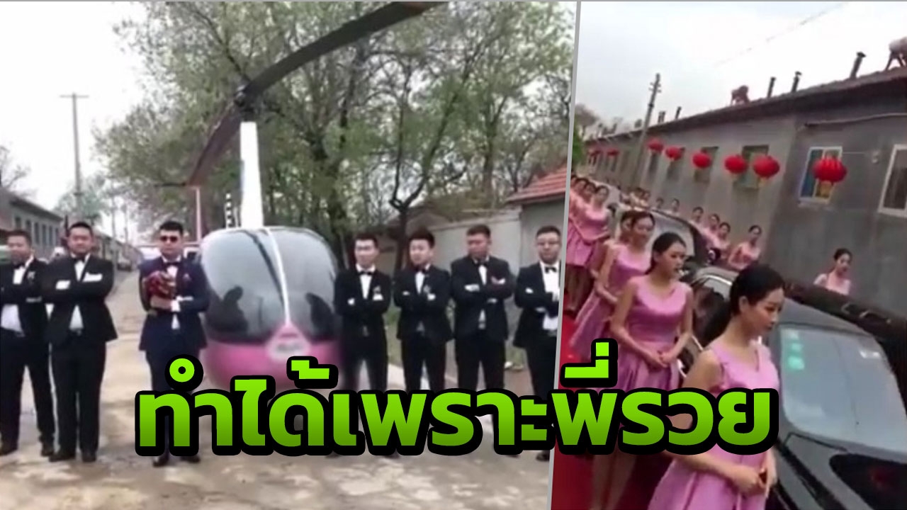 เศรษฐีชาวจีนทุ่มทุนจ้างเฮลิคอปเตอร์และขบวนรถอีกกว่า 30 คันมาร่วมในงานแต่งงานของเขา เพื่อสร้างความประทับใจไม่รู้ลืมแก่เจ้าสาว...