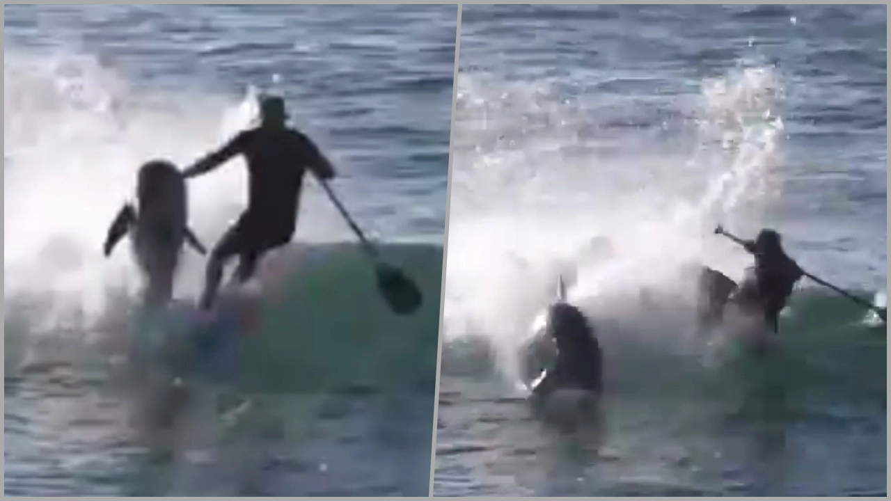 ชายชาวออสเตรเลียเจอเหตุการณ์ไม่คาดฝัน ขณะล่องแพดเดิลบอร์ดในทะเล เมื่อโลมาฝูงหนึ่งว่ายน้ำเข้าหาเขาด้วยความเร็วสูง ก่อนกระโดดชนจนเขาตกน้ำ...
