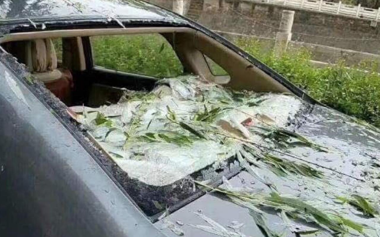 ชาวจีนสุดระทึก...เจอพายุฝนลูกเห็บถล่ม มณฑลส่านซี นานต่อเนื่องกว่า 20 นาที ต้องตะลึง ลูกเห็บบางก้อน มีขนาดใหญ่เท่าไข่นกพิราบ เส้นผ่าศก.ถึง 4 ซม. ทำ บ้าน-รถพังเพียบ