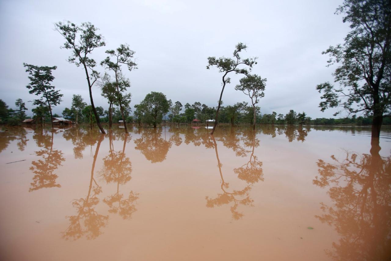 เขื่อนลาวแตก ส่งผลน้ำท่วมขยายวงกว้างขึ้น เมืองยมราช ในแขวงคำม่วน ประสบอุทกภัยด้วย ชาวบ้านกว่าพันครอบครัวใน จ.สตึงเตรง ภาคเหนือกัมพูชา ต้องอพยพหนีน้ำท่วมสูงร่วม 11 เมตร