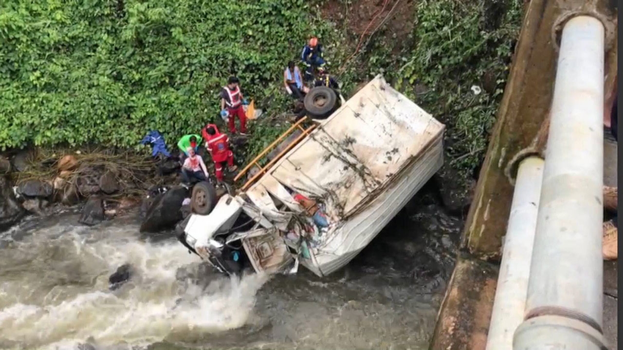 สภาพรถบรรทุก 6 ล้อ บรรทุกสิ่งของช่วยเหลือผู้ประสบภัยเขื่อนแตก เกิดอุบัติเหตุตกสะพานเซน้ำน้อย เมืองปากซอง แขวงจำปาสัก สปป.ลาว มีความสูงประมาณ 10 เมตร ส่งผลให้มีผู้เสียชีวิต 1 ศพ บาดเจ็บ 2 คน เฟซบุ๊ก Fangkhao99 นำมาเผยแพร่ มีผู้มาแสดงความเสียใจจำนวนมาก คาดสาเหตุถนนลื่น.