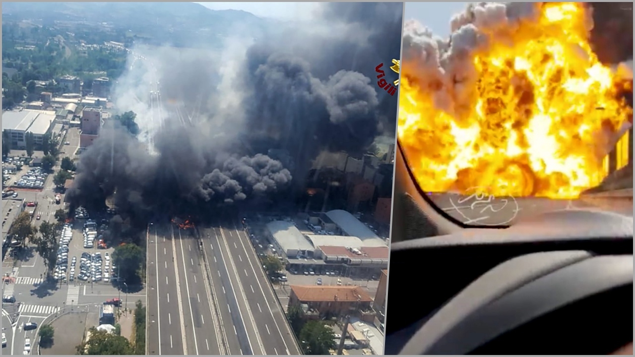 สื่อนอกเผยแพร่คลิปวิดีโอช่วงเวลาเกิดเหตุระเบิดบนทางด่วนในเมืองโบโลญญา โดยแรงระเบิดทำให้เกิดลูกไฟขนาดใหญ่พุ่งขึ้นฟ้า...