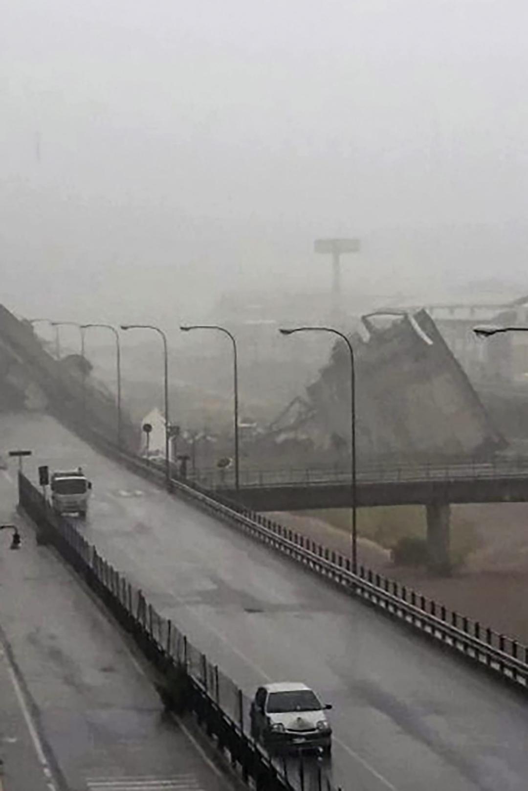รอยเตอร์ แจ้งว่า สถานีโทรทัศน์ในอิตาลีได้เผยแพร่ภาพขณะเกิดเหตุสะพานข้ามมอเตอร์เวย์สาย A10 ได้พังถล่มลงมา ขณะเกิดฝนตกหนัก โดยสะพานมอเตอร์เวย์ สายนี้ สร้างขึ้นตั้งแต่ช่วงทศวรรษ 1960 และมีการซ่อมแซมสะพาน เมื่อปี 2559 ในขณะที่สะพานสายนี้ใช้ข้าม แม่น้ำ ทางรถไฟ และตึก รวมทั้งโกดังหลายหลังที่อยู่ด้านล่างสะพาน