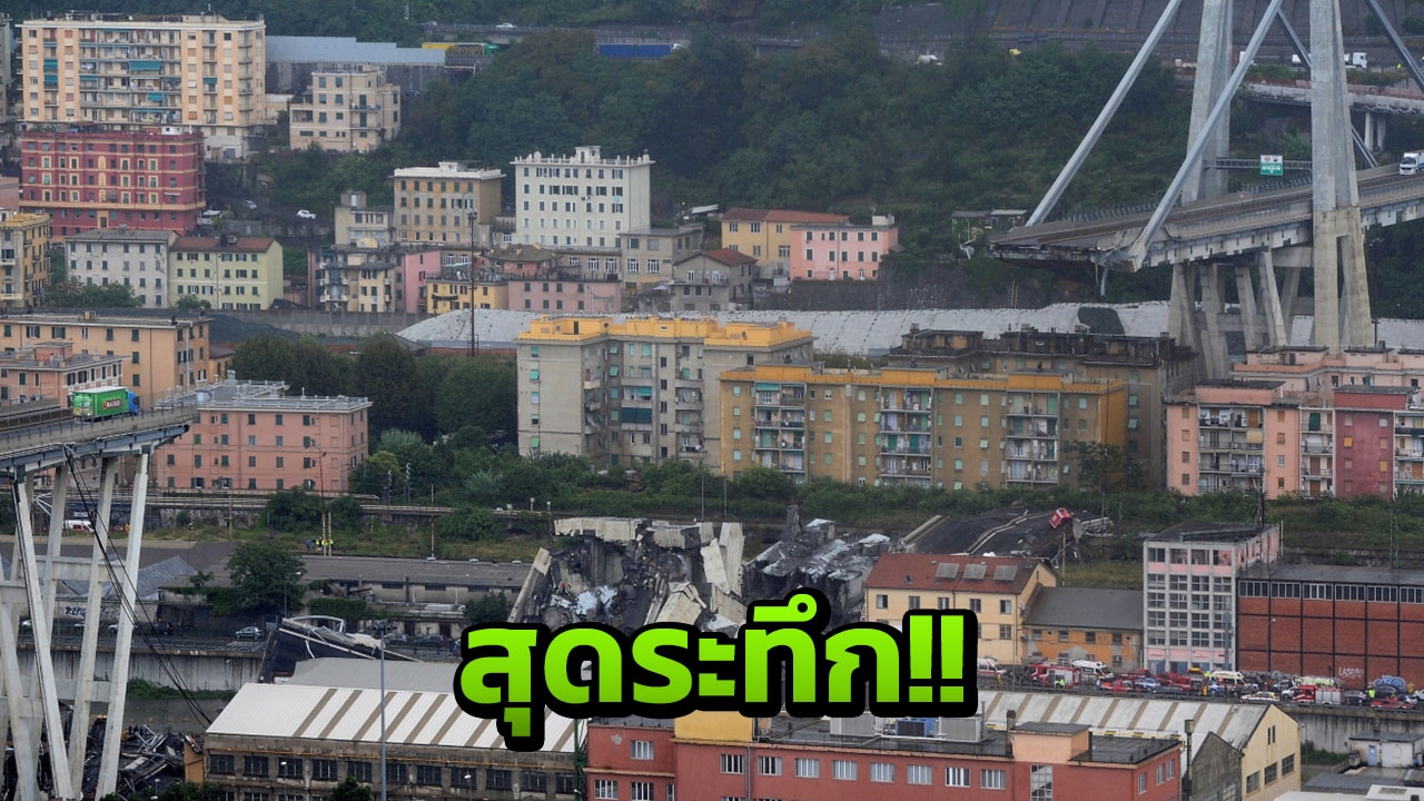 เมื่อ 14 ส.ค. 61 สำนักข่าวรอยเตอร์ รายงาน เกิดเหตุสะพานบนทางมอเตอร์เวย์ ในเมืองเจนัว ทางภาคเหนืออิตาลี พังถล่มลงมาบางส่วน เมื่อเวลาประมาณ 11.30 น. ของวันอังคารที่ 14 ส.ค. ตามเวลาท้องถิ่น หลังเกิดพายุฝนฟ้าคะนองอย่างหนัก คาดขณะนั้นมีรถยนต์ ราว 30-35 คัน กำลังแล่นมาพอดี ทำให้ร่วงตกลงมา และเกรงว่าเป็นเหตุให้มีผู้เสียชีวิตและบาดเจ็บกว่าสิบราย