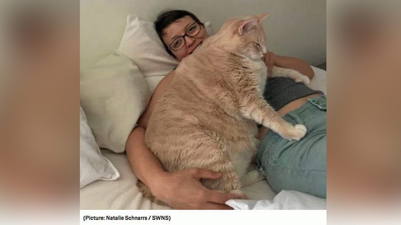 ปรากฏว่าเจ้าบร็อนสันอ้วนตุ้มต๊ะตุ้มตุ้ย น้ำหนักตัวถึง 33 ปอนด์ หนักกว่าน้ำหนักแมวโดยเฉลี่ยตั้งสองเท่า วัดรอบพุงกะทิได้ 32 นิ้ว เห็นสถิติแล้วทั่นสาธุชนคงพอนึกภาพออกว่ามิใช่น้ำหนักวิฬาร์ที่สุขภาพสมบูรณ์แข็งแรงหรอก... มันเคลื่อนไหวยากลำบาก แต่บร็อนสันก็ใจสู้น่าเอ็นดู