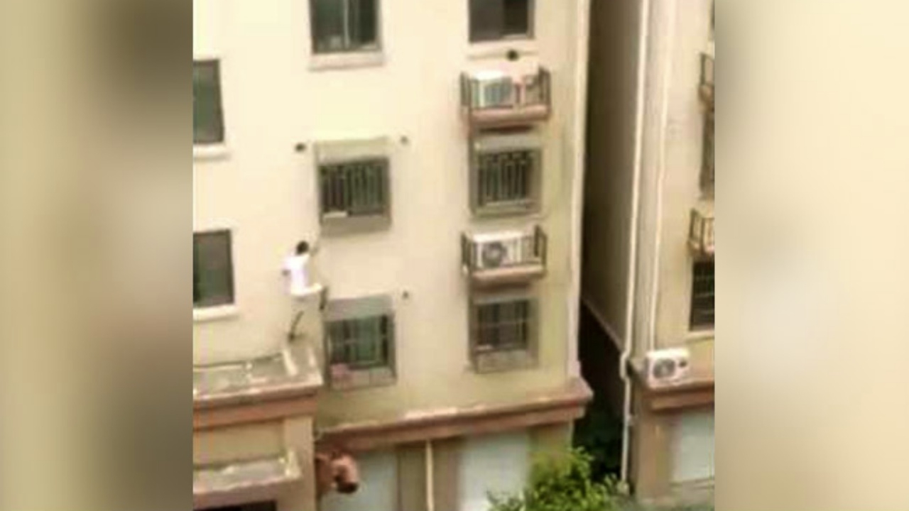 ชายหนุ่มชาวจีน 2 คนเห็นเด็กติดอยู่บนระเบียงชั้น 4 ของอาคาร จึงรีบปีนตึกขึ้นไปช่วยเหลือได้สำเร็จ ปลอดภัยทั้ง 3 คน...
