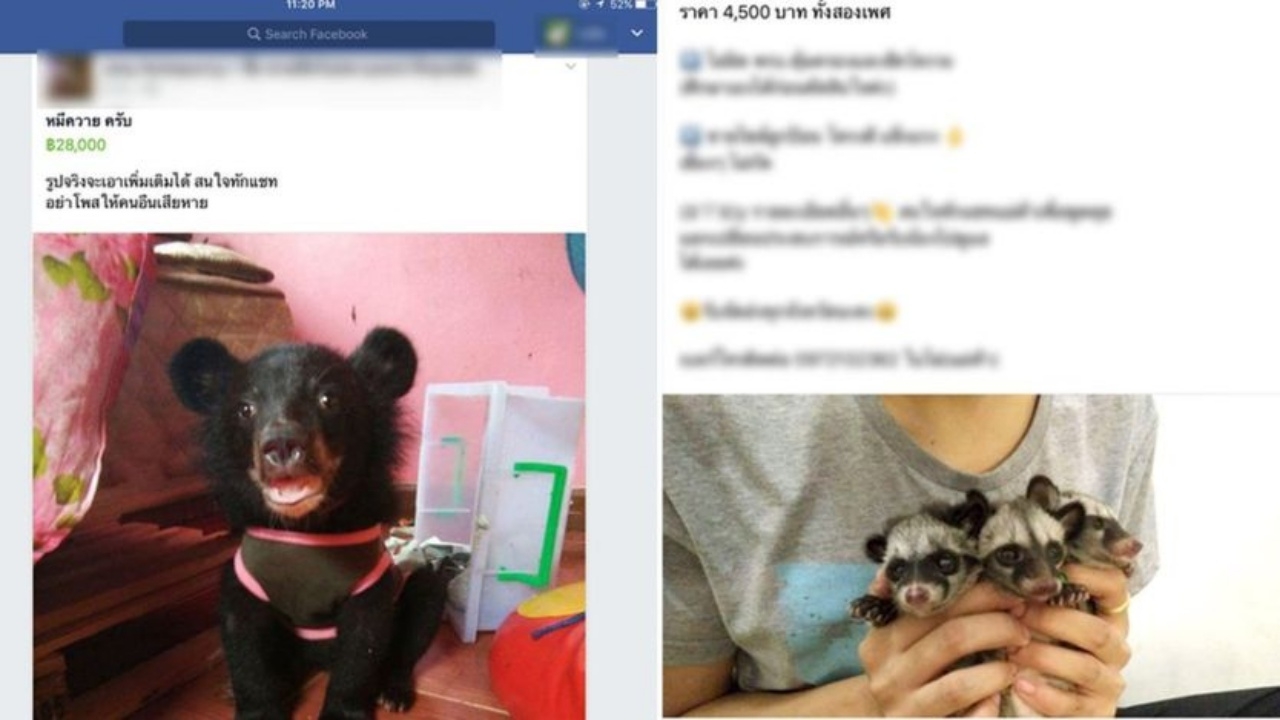 หน่วยงานเฝ้าระวังการลักลอบค้าสัตว์ป่า ตรวจสอบพบว่า มีสัตว์ป่าเป็นๆ มากกว่า 1,500 ตัวถูกโพสต์เสนอขายผ่านกลุ่มเฟซบุ๊กในประเทศไทย...