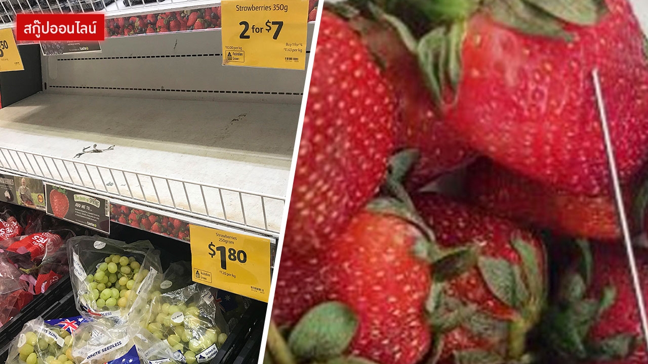 ขณะที่มีรายงาน พบสตรอว์เบอร์รีซ่อนเข็บเย็บผ้า จำนวนกว่า 100 ลูกแล้ว ด้วยเหตุนี้ กระแสความหวาดกลัวยังไม่ทุเลาเบาลง พร้อมกับคำถามสุดคาใจของชาวออสเตรเลียที่ยังไม่ได้รับคำตอบว่า ทำไมต้องทำร้ายผู้คนด้วยการซ่อนเข็มในสตรอว์เบอร์รี???