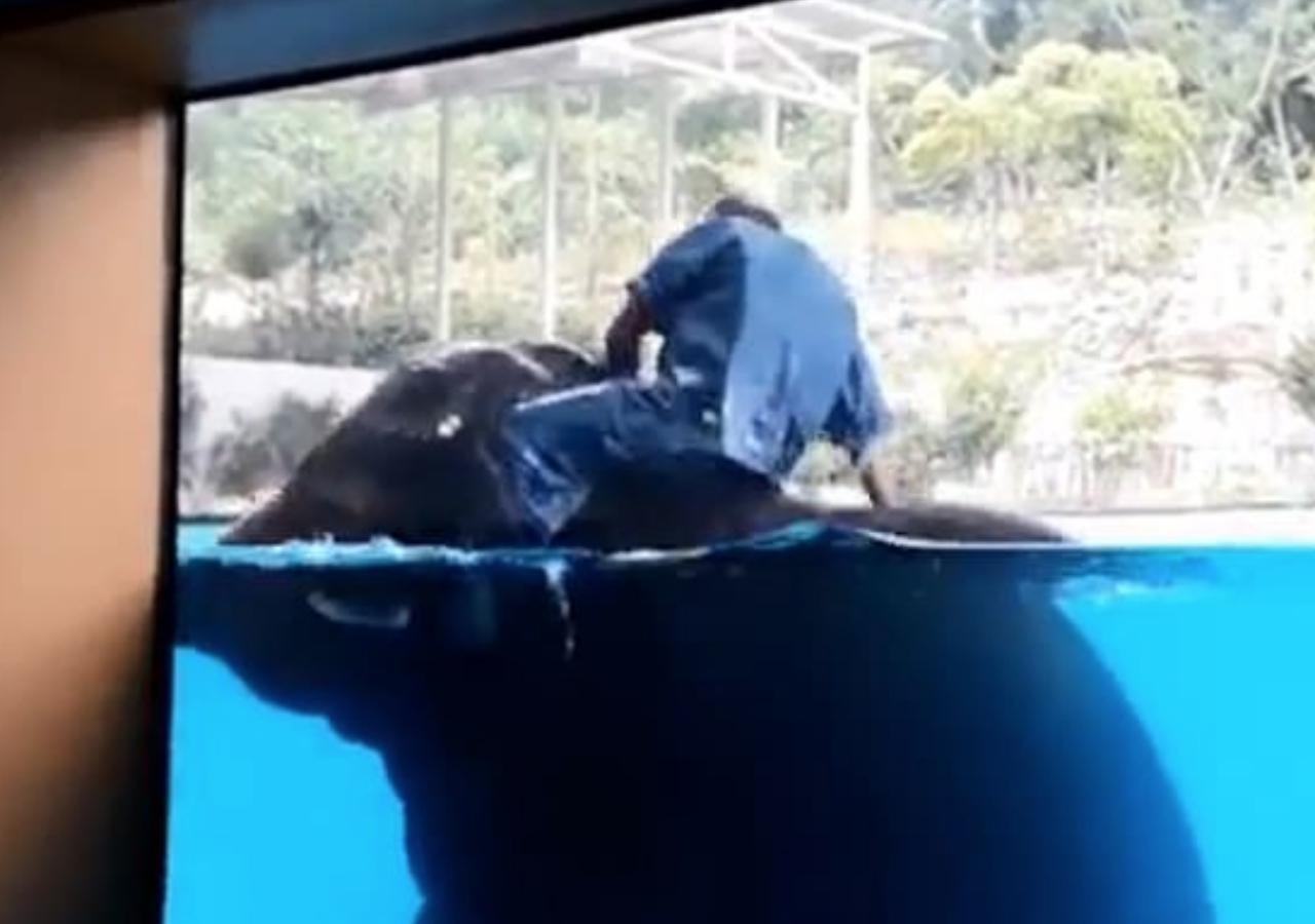 เดลี่เมล แจ้งว่า จากการแสดง เราสามารถเห็นคนฝึกช้างดึงหูทั้งสองข้างของช้าง ระหว่างการนำช้างมาแสดงดำน้ำ ท่ีสวนสัตว์เขาเขียว ใน จ.ชลบุรี ของไทย ขณะที่ ทางเว็บไซต์ Care2 ได้เรียกร้องให้ยุติการแสดงช้างดำน้ำผ่านกระจกใส โดยให้เหตุผลว่า 'ไม่มีช้างตัวไหนที่มีพฤติกรรมแบบการแสดงเหล่านี้เมื่ออยู่ในป่า' โดยช้างก็เหมือนสัตว์อื่นๆ ที่ไม่ควรถูกนำมาแสดงเพื่อสร้างความสนุกสนานให้กับผู้คน ช้างสมควรได้รับเสรีภาพในชีวิตของพวกมันเอง มีชีวิตที่ไม่พบเจอกับความโหดร้าย และควรได้อยู่ในป่า ซึ่งเป็นถิ่นที่อยู่ของพวกมัน