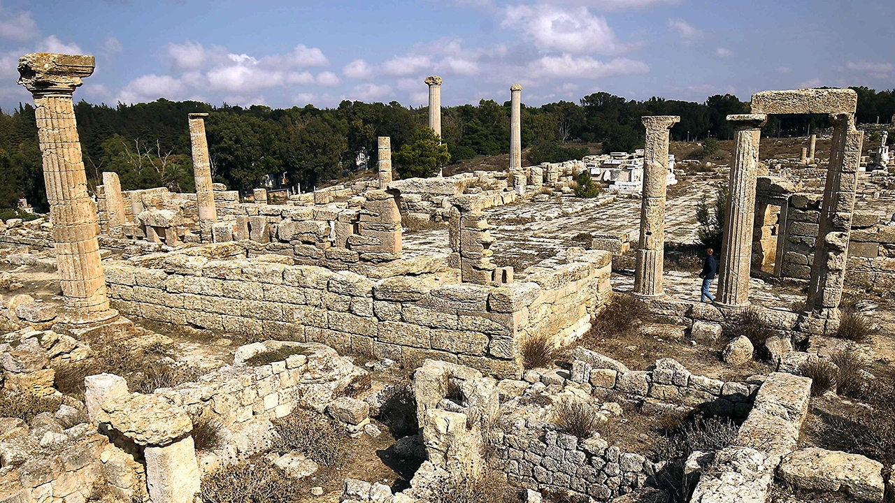 ซากปรักหักพังของเมืองโบราณคิวเรเน (Cyrene) ซึ่งเป็นหนึ่งในแหล่งโบราณคดีสมัยกรีกโบราณ เคยเป็นอาณานิคมของชาวกรีกแห่งเกาะซานโตรินี (Santorini) เมืองคิวเรเนนับเป็นเมืองกรีกโบราณที่ใหญ่ที่สุดและสำคัญที่สุดในยุคอารยธรรมกรีกเจริญรุ่งเรือง เมืองแห่งนี้สร้างขึ้นเมื่อ 630 ปีก่อนคริสตกาล ปัจจุบันตั้งอยู่ฝั่งตะวันออกของเมืองชาห์หัต ในประเทศลิเบีย.