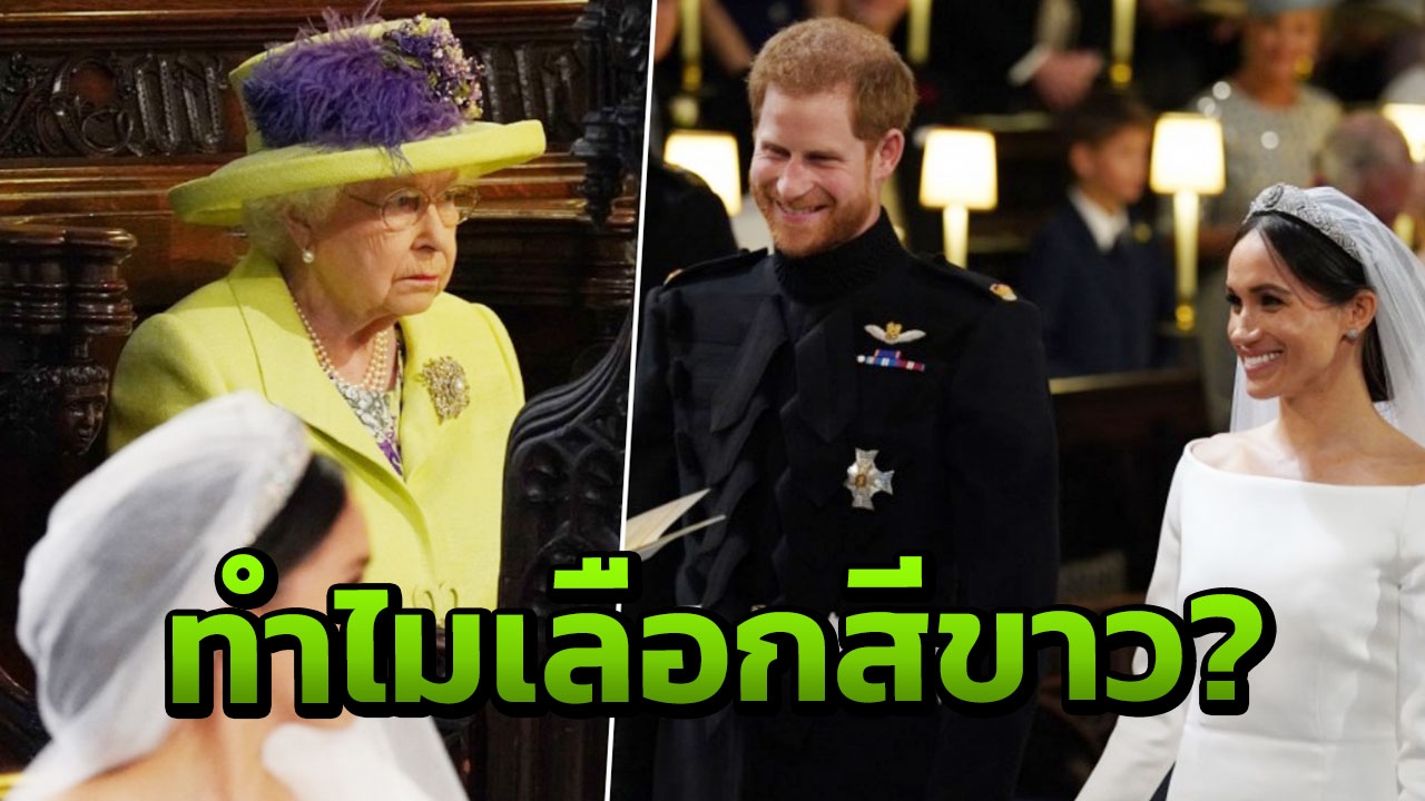 เดลี่เมล อ้างแหล่งข่าวในวัง เผยว่า ในขณะที่ผู้คนที่เฝ้าดูพิธีเสกสมรส ตะลึงงันกับเมแกนในชุดเจ้าสาวสีขาว คอปาด แขนยาวสุดสวย ทว่า ควีนเอลิซาเบธที่ 2 ทรงรู้สึกแปลกพระทัย ที่เมแกน วัย 37 ปี เลือกสวมชุดเจ้าสาวสีขาวบริสุทธิ์เข้าพิธีวิวาห์ เนื่องจากเมแกนเป็นแม่ม่าย ที่เคยผ่านการแต่งงานและหย่าร้างมาแล้ว โดยแหล่งข่าวเผยว่า ควีนเอลิซาเบธที่ 2 อาจทรงคาดว่าเมแกนจะเลือกชุดเจ้าสาวสีแชมเปญ หรือชมพูอ่อนๆ แทนที่จะเป็นสีขาวบริสุทธิ์