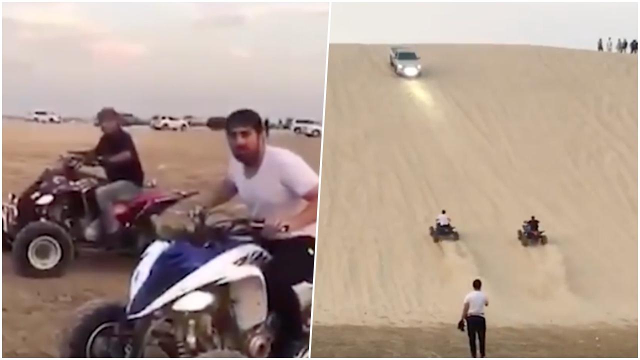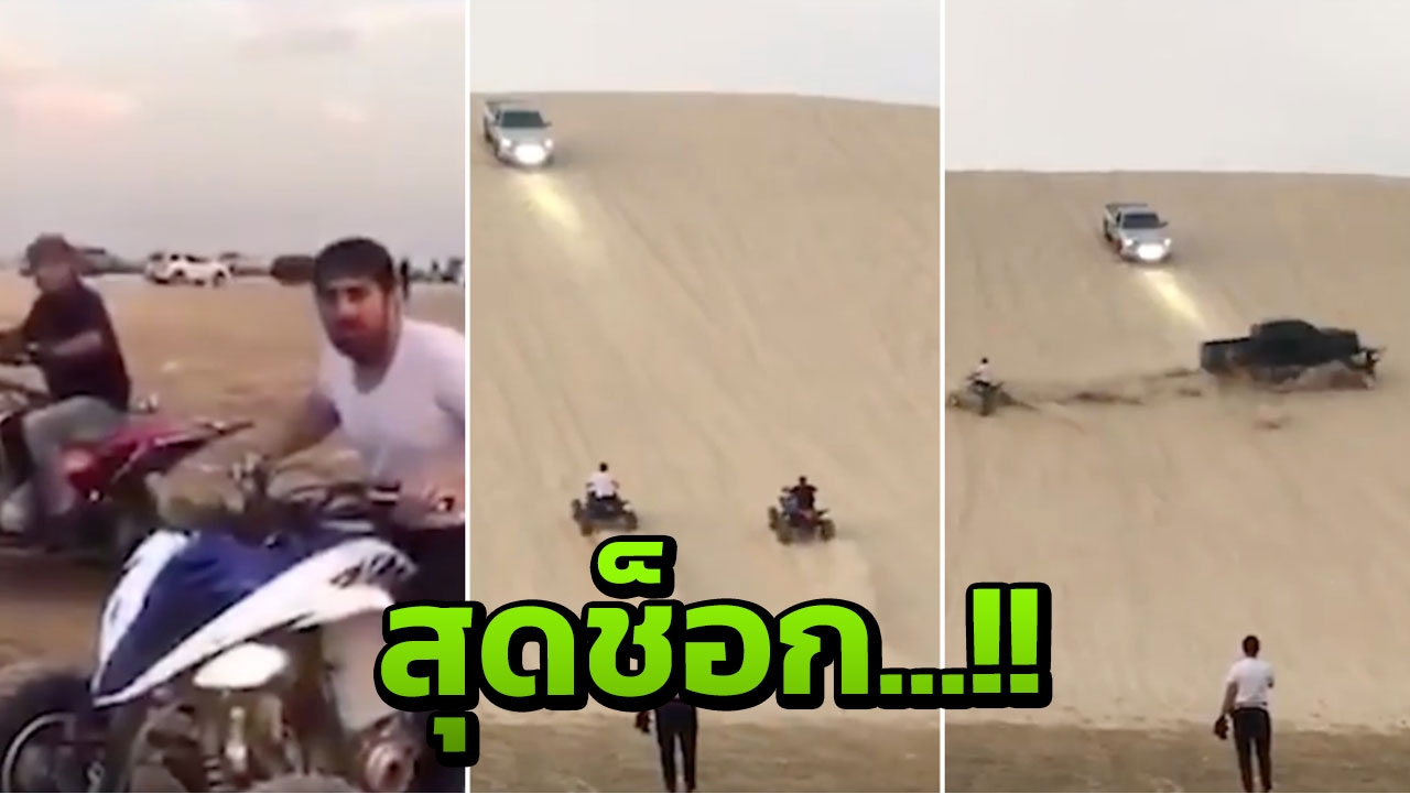 สะเทือนใจสุดๆ...เผยคลิปนาทีอุบัติเหตุสยอง สองพ่อลูกขี่มอเตอร์ไซค์ในทะเลทรายที่กาตาร์ ก่อนไม่กี่อึดใจต่อมา โดนรถกระบะแบบออฟโรดพุ่งชนเต็มๆ ทำให้ชายผู้เป็นพ่อตายสลด