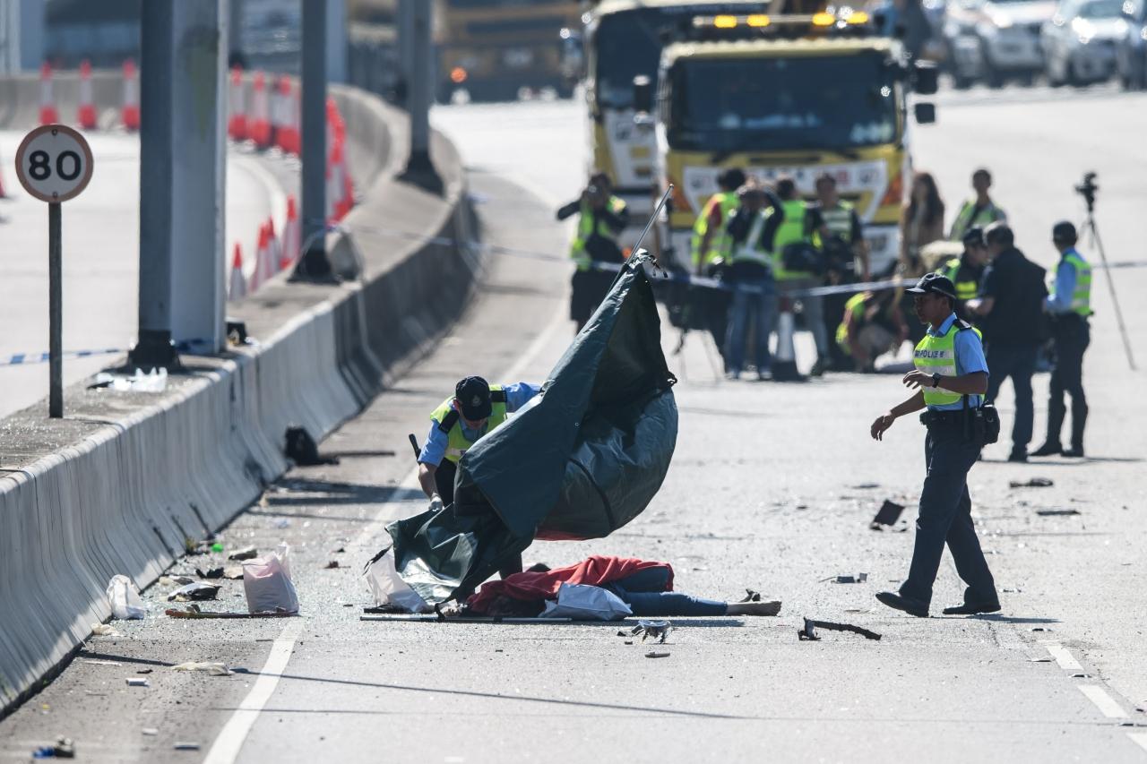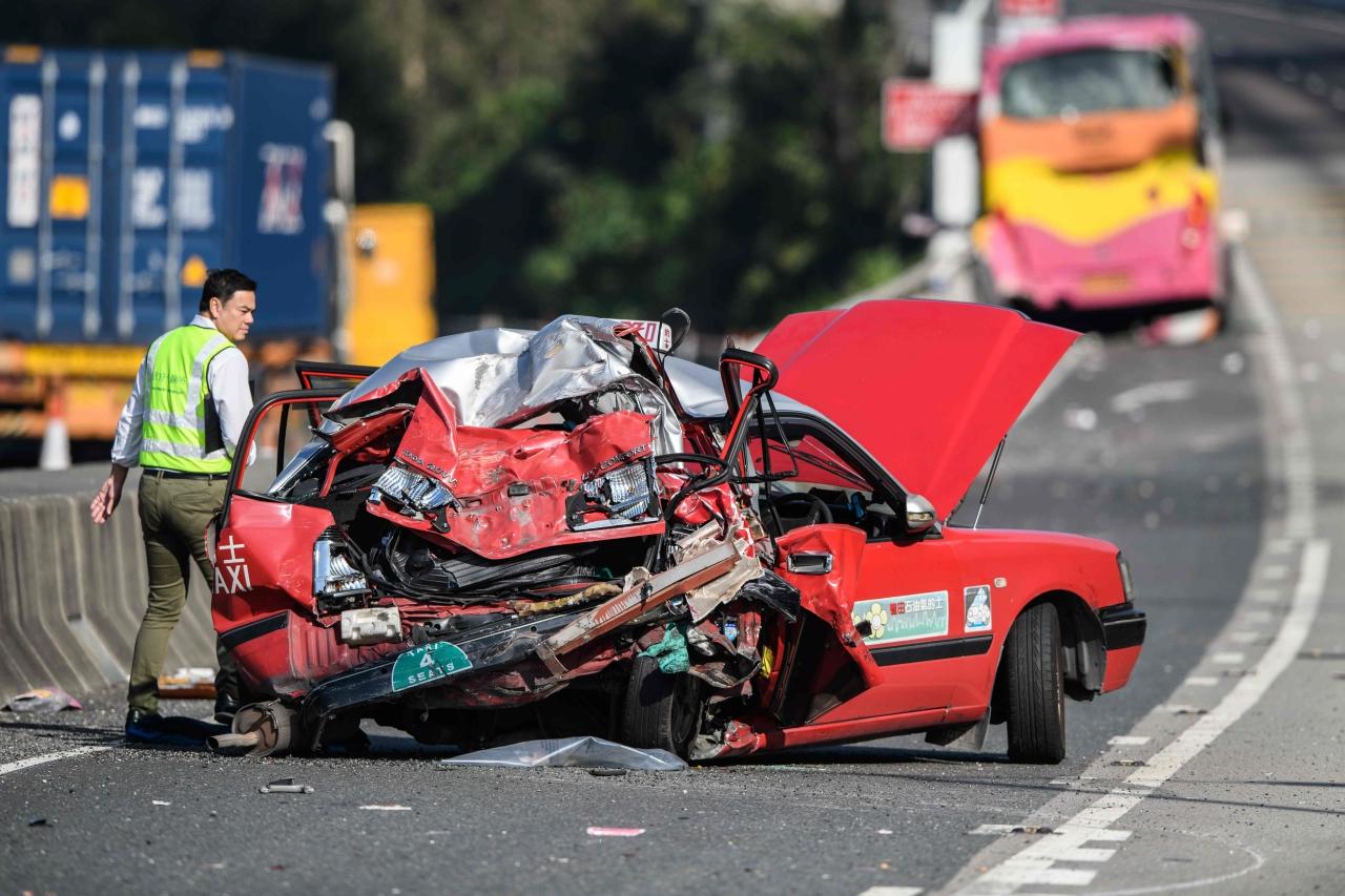 ตามการเปิดเผยของเจ้าหน้าที่ตำรวจฮ่องกง เชื่อว่า รถแท็กซี่เกิดเสียกะทันหัน คนขับจึงนำรถจอดอยู่ที่เลนซ้ายสุดของถนน พร้อมกับได้เปิดไฟสัญญาณฉุกเฉินไว้ แต่แล้วอีกราว 40 วินาทีต่อมา รถบัสปรับอากาศขนส่งพนักงานสายการบินคาเธ่ย์ แปซิฟิก ได้ พุ่งชนรถแท็กซี่อย่างรุนแรง จนด้านหลังรถแท็กซี่พังยับเยิน ส่วนรถบัสปรับอากาศหลังจากพุ่งชนรถแท็กซี่แล้ว ยังพุ่งไปชนกับแบริเออร์ จนรถหยุดลงได้ แรงกระแทกทำให้ผู้โดยสารบนรถบัส 3 คนกระเด็นออกนอกรถ ขณะที่คนขับรถบัสวัย 62 ก็กระเด็นออกนอกรถ ได้รับบาดเจ็บเช่นกัน
