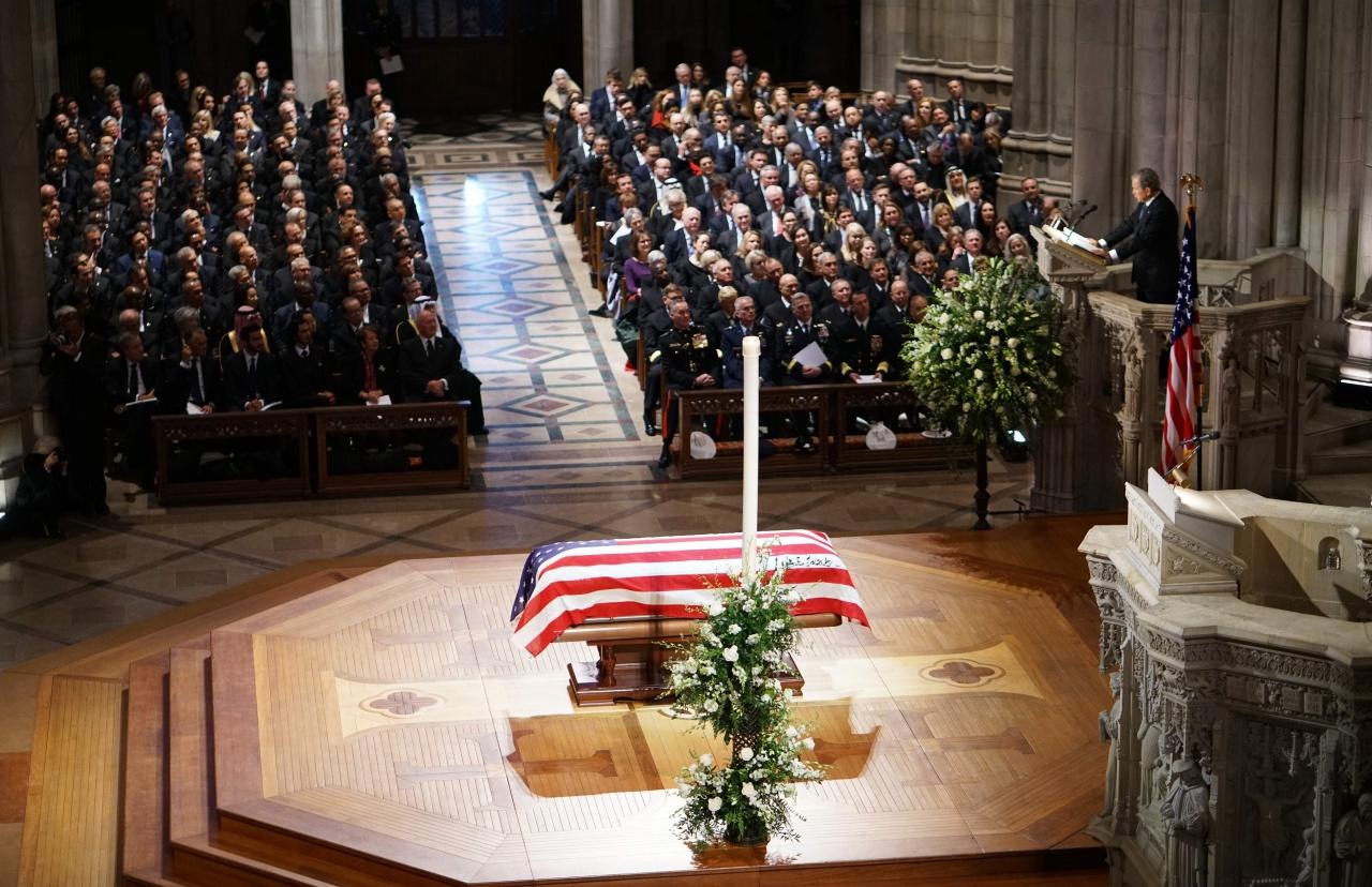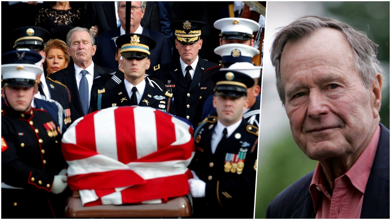 จอร์จ เอช.ดับเบิลยู. บุช ซึ่งดำรงตำแหน่งประธานาธิบดีสหรัฐฯ ในปี 2532-2536 ถึงแก่อสัญกรรมเมื่อวันศุกร์ที่ 30 พ.ย. ที่ผ่านมา ศพของเขาถูกเคลื่อนย้ายไปยังอาคารรัฐสภาเพื่อให้สาธารณะชนได้เข้าไปแสดงความอาลัยตั้งแต่วันจันทร์ ก่อนจะถูกนำไปที่โบสถ์แห่งชาติ เพื่อประกอบรัฐพิธีศพในวันพุธ ซึ่งมีเพียงแขกที่ได้รับเชิญเท่านั้นที่เข้าร่วมได้