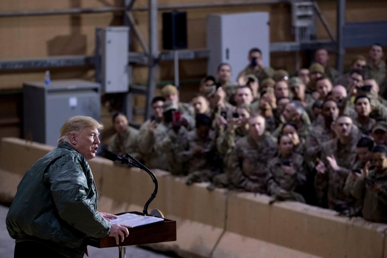 นายทรัมป์กับภริยา รวมทั้งนาย จอห์น โบลตัน ที่ปรึกษาด้านความมั่นคงแห่งชาติ เดินทางเยือนฐานทัพอากาศ ‘อัล-อาซาด’ ทางตะวันตกของกรุงแบกแดด เพื่อพบเหล่าทหาร โดยประธานาธิบดีสหรัฐฯ ยืนยันว่า จะไม่ถอนทหารสหรัฐฯ ซึ่งมีราย 5,000 นายออกจากอิรัก และกล่าวปกป้องการตัดสินใจถอนทหารออกจากซีเรียของตนเองเมื่อสัปดาห์ก่อน