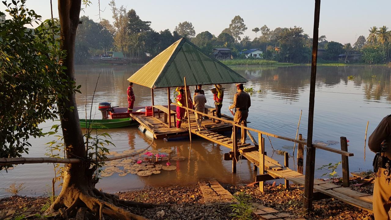 เจ้าหน้าที่กู้ภัยบูรพาจึงนำร่างขึ้นมาบริเวณโป๊ะที่เกิดเหตุเพื่อให้ตำรวจและแพทย์ร่วมกันชันสูตร ทราบชื่อคือ นายจุนยง ชอง อายุ 68 ปี สภาพศพสวมเสื้อสีเขียว ใส่ปลอกแขนและถุงมือ กางเกงขายาวสีเทา รองเท้ากอล์ฟสีแดงคาดขาว ก่อนให้เจ้าหน้าที่กู้ภัยนำศพส่งให้แพทย์ชันสูตรสาเหตุการเสียชีวิตโดยละเอียดอีกครั้ง ที่แผนกนิติเวช รพ.พุทธชินราช อ.เมืองพิษณุโลก