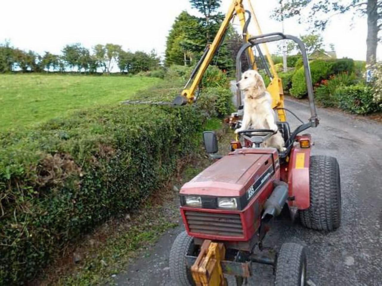 (^_^) ต้องนี่สิ “เจ้าแรมโบ้” พันธุ์โกลเดนรีทรีฟเวอร์ อายุ 6 ปี ของชาวนาแฟมิลี่นึง จาก เขตเคาน์ตี้ดาวน์ ของไอร์แลนด์ เหนือ ทำหน้าที่ได้เกินคำว่า “หมา” พอได้เวลาเป็น “ตัวช่วย” ก็จะขึ้นไปนั่งบนรถแทรกเตอร์ สองตีนหน้าคุมพวงมาลัย แถ่ด...แถ่ด...แถ่ด...ทั้งตัดหญ้ารอบบ้าน+ไถดะไถแปรทุ่งนา+ตัดแต่งแนวพุ่มไม้รอบคันนา หูยยย... รว้ายยยจุง!!!!