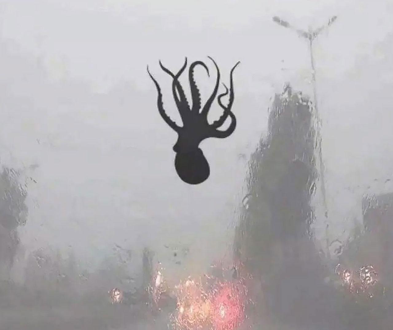 (^_^) เห็นปลาหมึกหนวดยั้วเยี้ยแปะติดคาหน้าต่างแล้ว คนแถวๆ เมืองชิงเต่า มณฑลชานตง ของจีน รู้สึกว่า มันก็จะ “เซอร์ไพรส์”+“ไอ้หยา”+“เว้ยเฮ้ย” หน่อยๆ และอีกสารพัดสัตว์ทะเล ลอยฟ้าตกลงมาตัวละแหมะ สองแหมะ มาร้องอ๋อ ทีหลัง เพราะอุตุฯบอก พายุเฮอริเคน หมุนเป็นรูปกรวยแตะผิวน้ำที่เรียกว่า “waterspout” จากทะเลเหลือง แล้วใช้กำลังภายใน...เอ้ย...กำลังความเร็ว 124.8 กม./ชม. หอบขึ้นไปให้กลายเป็น “ฝนซีฟู้ดดดด”!!! (^_^)
