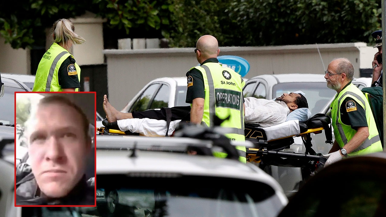 ผู้บาดเจ็บจากเหตุกราดยิงผู้คนที่มัสยิดอัล นูร์ ใน เมืองไครสต์เชิร์ช บนเกาะใต้ของนิวซีแลนด์ ถูกนำส่งโรงพยาบาล หลังมือปืนชายผิวขาว (ภาพเล็ก) บุกยิงผู้คนอย่างไม่เลือกหน้า ทั้งยัง ถ่ายทอดสดการก่อเหตุร้ายผ่านเฟซบุ๊ก คร่าชีวิต ผู้คนถึง 49 ศพ.