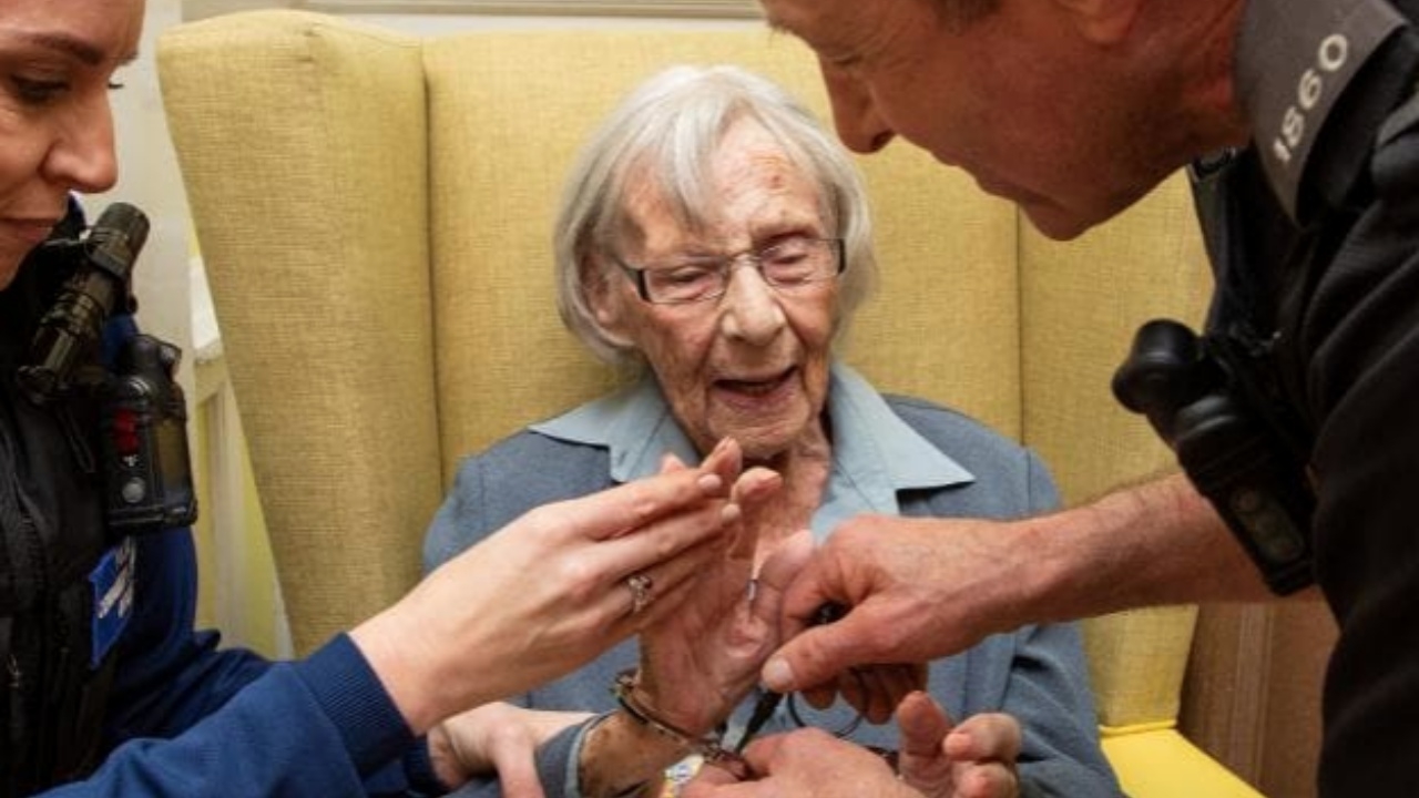 ทันทีที่ตำรวจและเจ้าหน้าที่หน่วยสนับสนุนตำรวจชุมชนรู้เรื่องนี้ พวกเขาก็มาช่วยเติมความฝันของคุณยาย และเพื่อให้สมจริงสมจังก็ต้องมีการสวมกุญแจมือก่อนจะประคองพาไปยังรถตำรวจที่จอดรอ คุณยายก็ไม่ได้มีท่าทีขัดขึืนเพราะความปรารถนาของเธอกลายเป็นจริงแล้วที่จะรู้สึกถึงการเป็นอาชญากรสักครั้งในชีวิต แถมยังบอกว่านี่คือช่วงเวลาที่น่ารื่นรมย์เหลือเกิน และเป็นวันสำคัญของเธอกับการได้ทำกิจกรรมแตกที่ต่างมากมายในสถานดูแลแห่งนี้