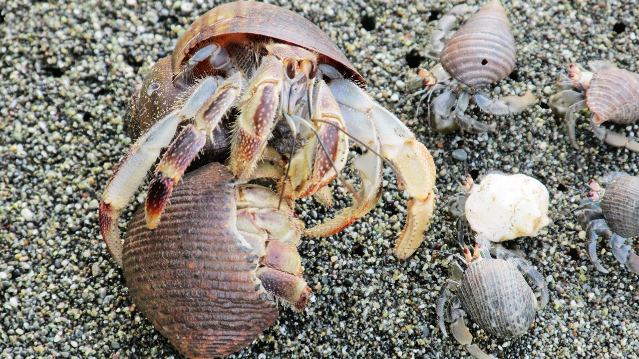 ปูเสฉวนเป็นสัตว์จำพวกครัสเตเชียนที่มีความโดดเด่น นักวิจัยมักจะสนใจเกี่ยวกับวิธีการอยู่รอดของพวกมัน โดยเฉพาะการครอบครองเปลือกหอยใช้เป็นที่อาศัย ปูเสฉวนจะมีส่วนท้องที่อ่อนซึ่งไม่ได้รับการปกป้องจากกระดองที่เติบโตตามธรรมชาติ ดังนั้นเพื่อป้องกันตัวเองพวกมันต้องไปอาศัยอยู่ในเปลือกหอยชนิดอื่นๆ เวลาเคลื่อนไหวก็แบกเอาเปลือกหอยไปด้วยและซ่อนตัวจากนักล่า ทว่าปูเสฉวนต้องเปลี่ยนเปลือกหอยใหม่เป็นระยะ เพราะพวกมันเจริญเติบโตเร็ว ดังนั้น จึงมักมีกระบวนการแข่งขันแย่งชิงเปลือกหอยในหมู่ปูเสฉวน