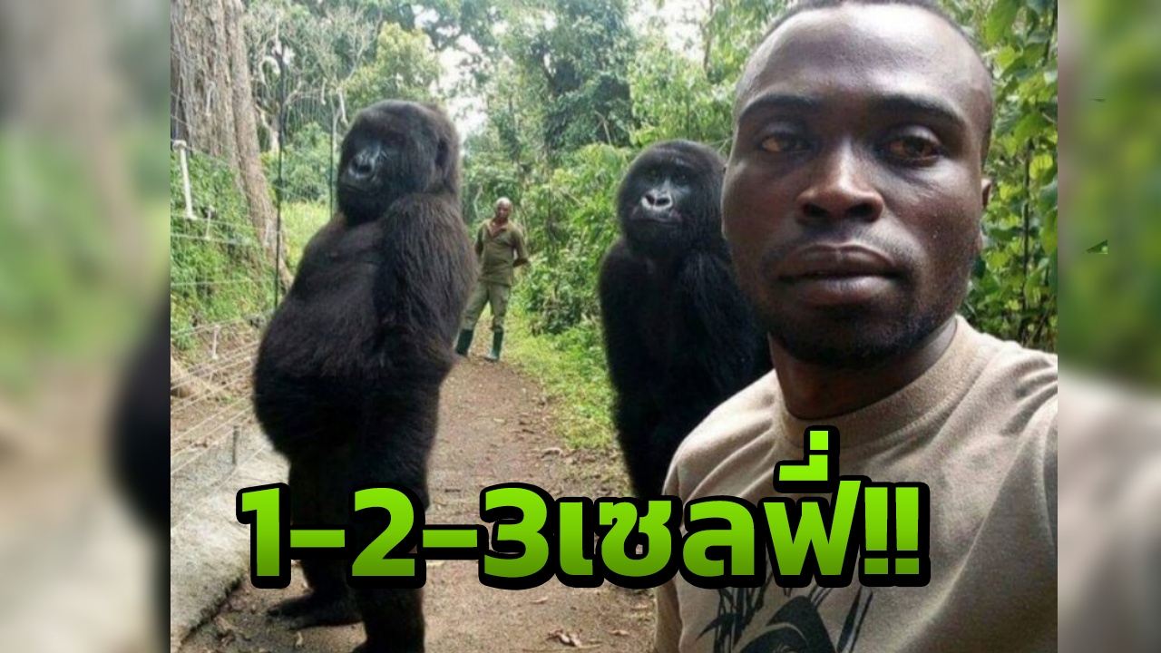 ภาพประทับใจ 2 กอริลลากำพร้า ยืนถ่ายรูปเซลฟี่กับเจ้าหน้าที่พิทักษ์ป่าคองโก ด้วยท่าทางเลียนแบบคนไม่มีผิด รอง ผอ.อุทยานแห่งชาติบอกประหลาดใจที่เห็นกอริลลาทั้ง 2 เลียนแบบท่าทางของคนได้ถึงขนาดนี้