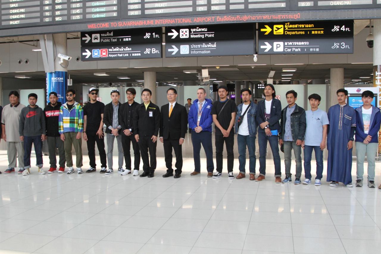 เมื่อวันที่ 17 พฤษภาคม 2562 นายสรยุทธ ชาสมบัติ รองอธิบดีกรมการกงสุล พร้อมด้วยนายบัญชา ยืนยงจงเจริญ ผู้อำนวยการกองคุ้มครองและดูแลผลประโยชน์คนไทยในต่างประเทศ และเจ้าหน้าที่กองคุ้มครองและดูแลผลประโยชน์คนไทยในต่างประเทศ กรมการกงสุล กระทรวงการต่างประเทศ ได้ต้อนรับและอำนวยความสะดวกให้แก่กลุ่มนักศึกษาไทยจากมหาวิทยาลัย International Islamic Call College ประเทศลิเบีย จำนวน 15 คน ที่อาคารผู้โดยสารเข้า ท่าอากาศยานนานาชาติสุวรรณภูมิ เที่ยวบิน TK 64 เมืองอิสตันบูล - กรุงเทพฯ วันที่ 17 พ.ค. 2562 เวลา 09:50 น.