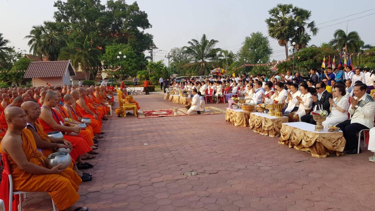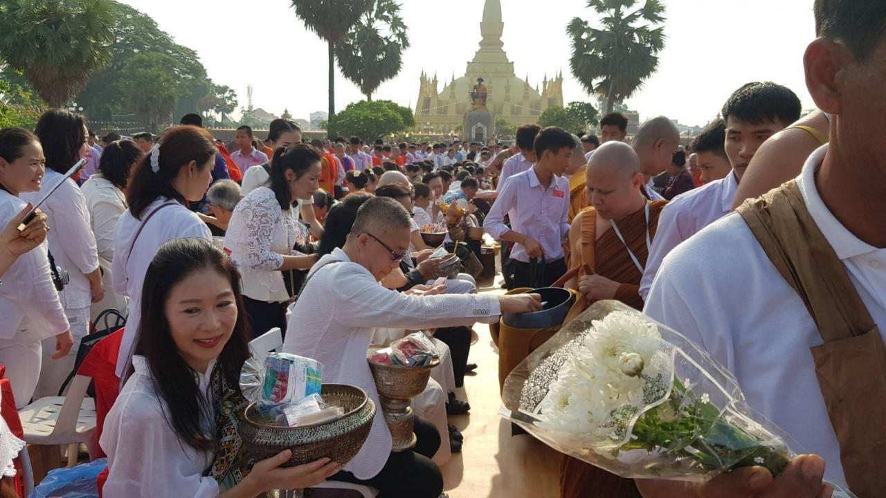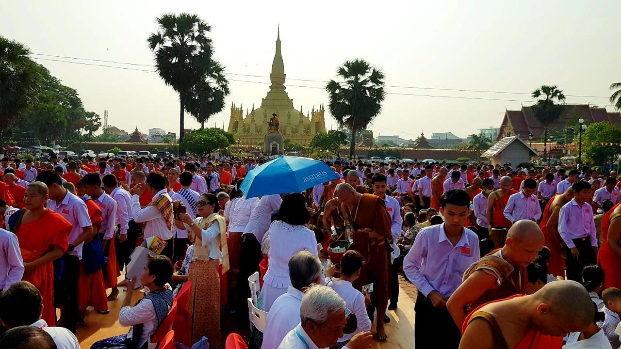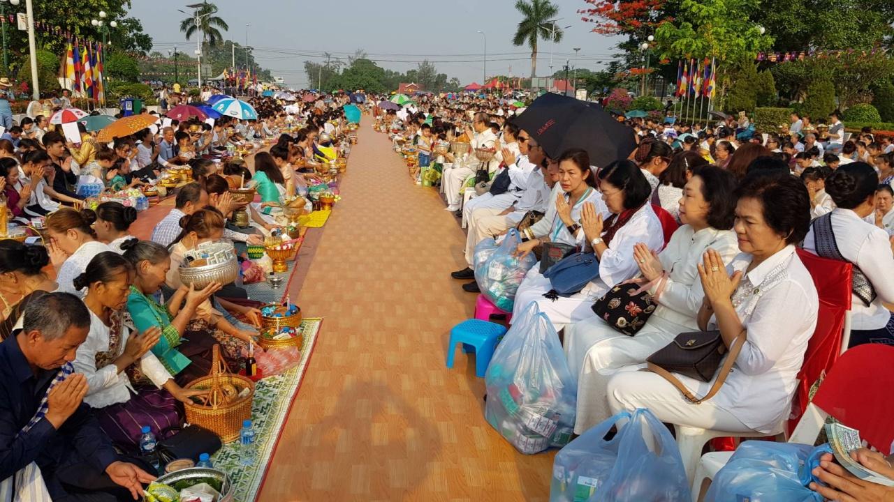 สำหรับปีนี้ถือเป็นปีพิเศษที่ สปป.ลาว รวมพลังชาวพุทธ จัดขึ้นอย่างยิ่งใหญ่สมบูรณ์แบบทั้งการปฏิบัติธรรม การประกอบพิธีสำคัญทางพุทธศาสนาเต็มรูปแบบ เพื่อร่วมกันรำลึกถึงองค์สมเด็จพระสัมมาสัมพุทธเจ้าในวันสำคัญนี้ ส่งผลให้ชาวพุทธใน สปป.ลาว และจากประเทศไทยแห่เข้าร่วมงานกันอย่างเนืองแน่น โดยเฉพาะการทำบุญใส่บาตรที่มีพระสงฆ์ทั่วนครหลวงเวียงจันทน์และจากประเทศไทย ที่นำโดย พระธรรมวรนายก และ พระเมธีวรญาณ (เจ้าคุณสายเพชร) กว่า 1,000 รูป ออกรับบิณฑบาต