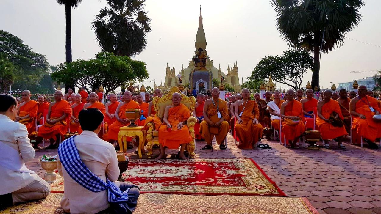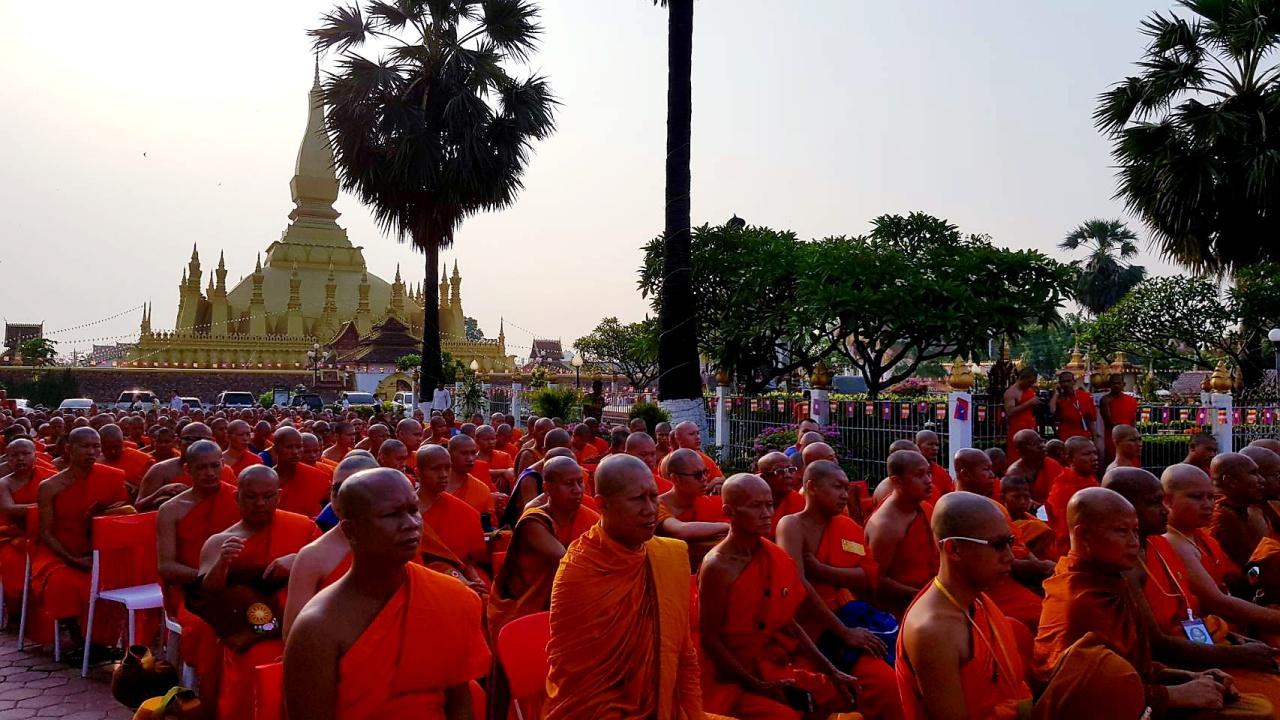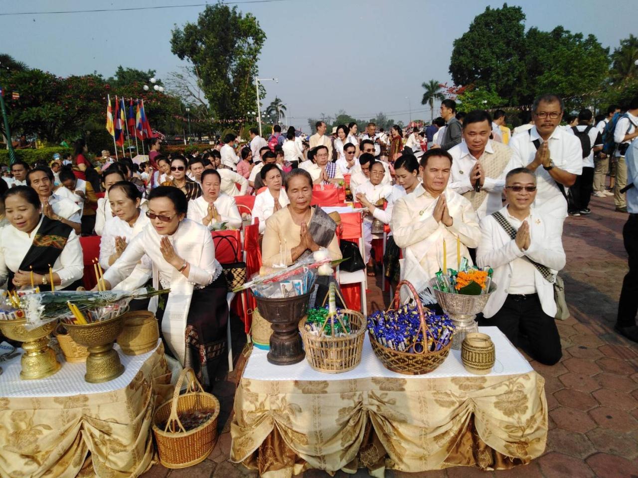 สำหรับปีนี้ถือเป็นปีพิเศษที่ สปป.ลาว รวมพลังชาวพุทธ จัดขึ้นอย่างยิ่งใหญ่สมบูรณ์แบบทั้งการปฏิบัติธรรม การประกอบพิธีสำคัญทางพุทธศาสนาเต็มรูปแบบ เพื่อร่วมกันรำลึกถึงองค์สมเด็จพระสัมมาสัมพุทธเจ้าในวันสำคัญนี้ ส่งผลให้ชาวพุทธใน สปป.ลาว และจากประเทศไทยแห่เข้าร่วมงานกันอย่างเนืองแน่น โดยเฉพาะการทำบุญใส่บาตรที่มีพระสงฆ์ทั่วนครหลวงเวียงจันทน์และจากประเทศไทย ที่นำโดย พระธรรมวรนายก และ พระเมธีวรญาณ (เจ้าคุณสายเพชร) กว่า 1,000 รูป ออกรับบิณฑบาต
