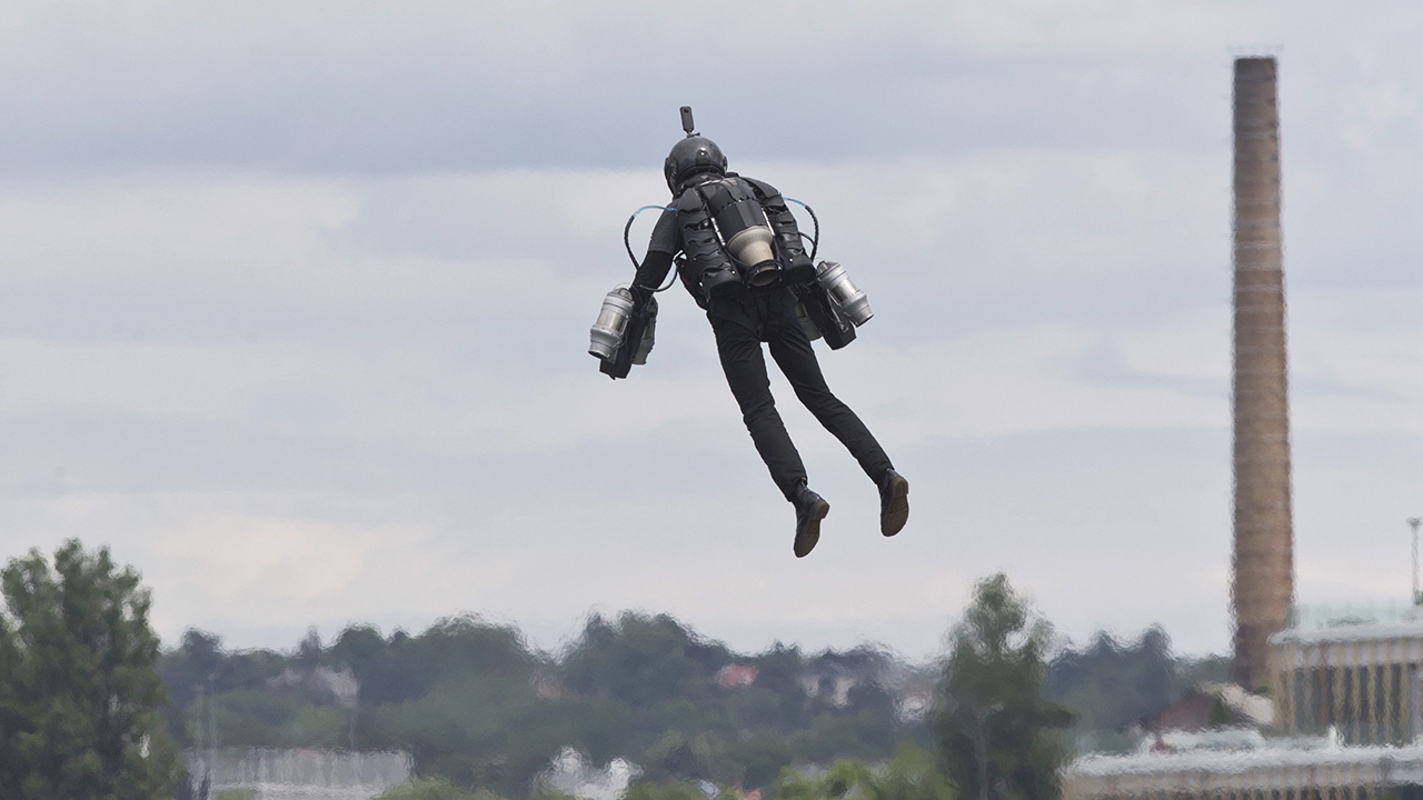 ชายคนนี้สวมชุดไอพ่นสำหรับบินที่เรียกว่า “กราวิตี้ เจ็ต สูท” (Gravity Jet Suit) แสดงให้เห็นการประดิษฐ์เทคโนโลยีเครื่องแบบสวมใส่ที่สามารถทำให้เขาบินข้ามทะเลสาบในกรุงเบลเกรดได้ ซึ่งการสาธิตบินดังกล่าวเป็นส่วนหนึ่งของการประชุม “เวิลด์ มายด์ส” (World Minds) ที่จัดขึ้นในเมืองหลวงของประเทศเซอร์เบีย.