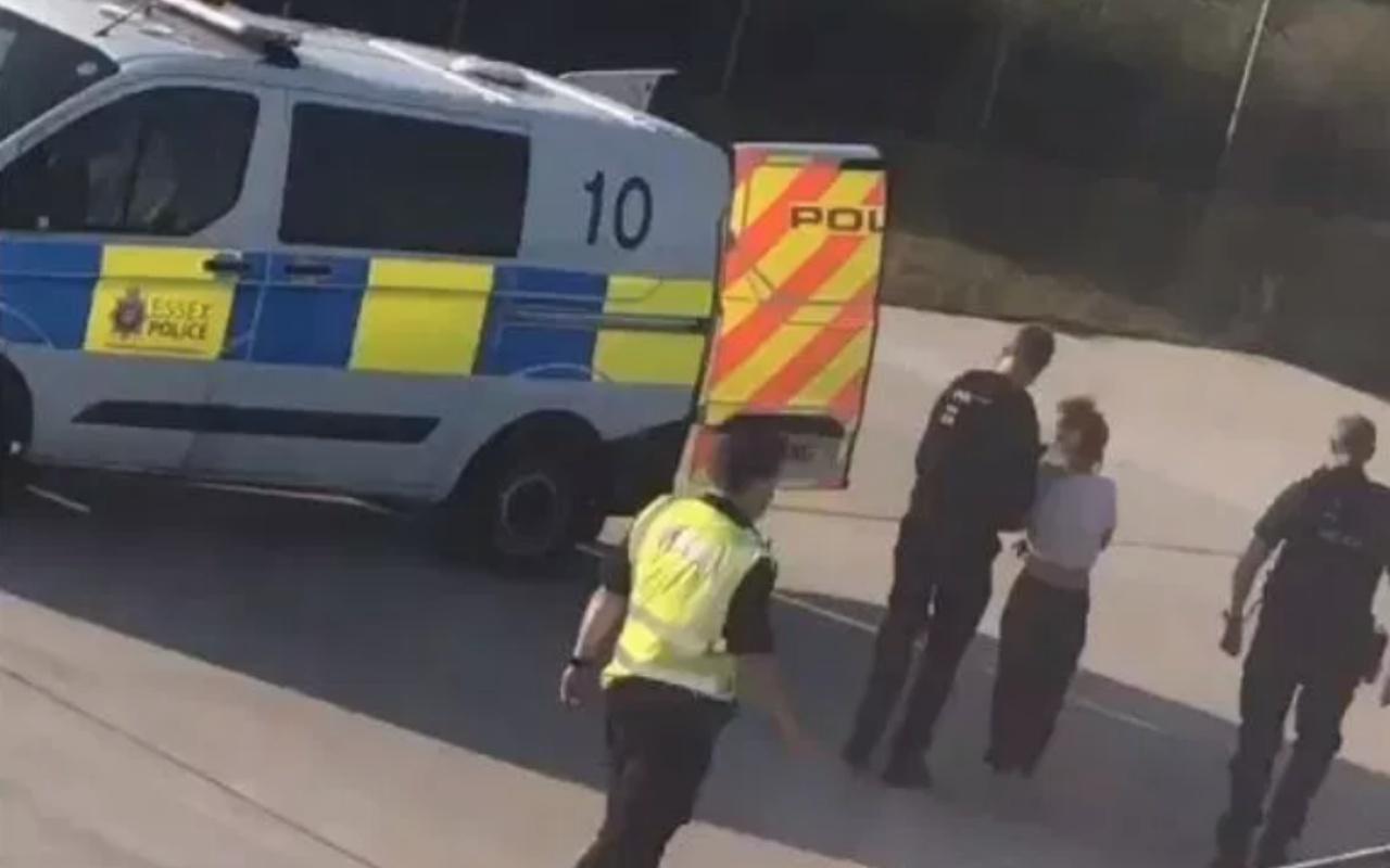 จากนั้น เครื่องบินโดยสารแอร์บัส 321 ของสายการบินเจ็ต 2 ลำนี้ ได้กลับมาลงจอดที่สนามบินลอนดอน สแตนสเต็ด เมื่อเวลาประมาณ 17.49 น. ของวันเสาร์ที่ 22 มิ.ย.ตามเวลาท้องถิ่น และมีเครื่องบินขับไล่ของกองทัพอังกฤษ 2 ลำบินคุ้มกันมา โดยหญิงผู้โดยสารคนนี้ ซึ่งอ้างว่าเธอมีอาการมึนเมา ได้ถูกเจ้าหน้าที่ตำรวจควบคุมตัวในข้อหาก่อเหตุรุนแรงสร้างอันตรายบนเครื่องบิน