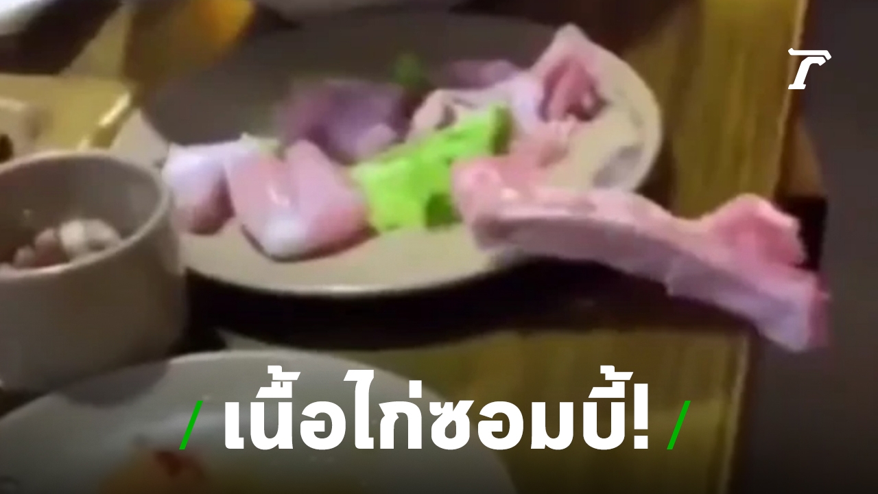 ลูกค้าร้านอาหารแห่งหนึ่ง สามารถบันทึกภาพวินาทีที่ เนื้อไก่สดบนจานอาหาร จู่ๆ ก็ขยับแล้วค่อยๆ คลานลงจากโต๊ะอาหารอย่างน่าสยดสยอง