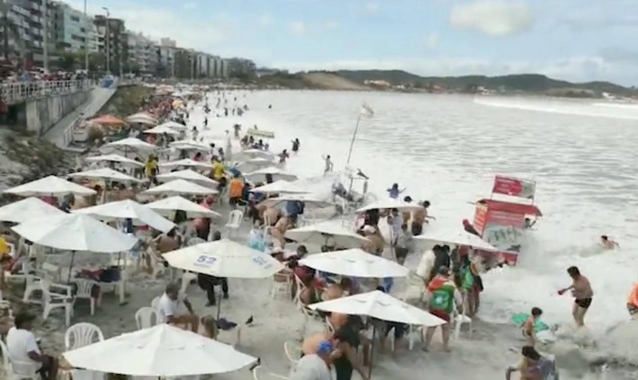 นักท่องเที่ยวหวีดร้องลั่น สุดกลัว จู่ๆ เกิดคลื่นลูกใหญ่ซัดชายหาดในบราซิล ชนิดไม่มีใครคาดคิด ซัดเก้าอี้ ข้าวของ ขณะที่พ่อแม่รีบจับลูกๆ ไม่ให้ลอยไปกับคลื่น