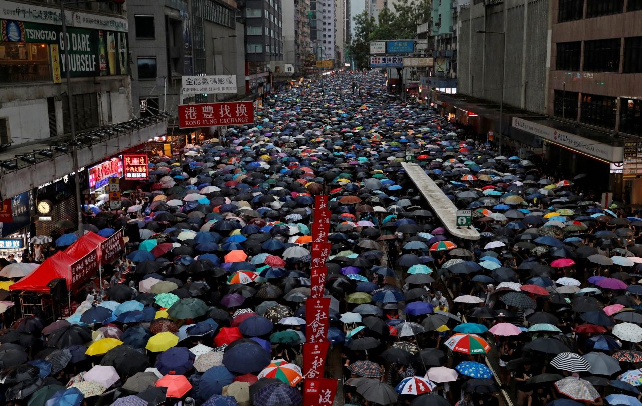เมื่อ 18 ส.ค.62 สำนักข่าวต่างประเทศ รอยเตอร์ บีบีซี และเว็บไซต์เซาท์ไชน่ามอร์นิ่งโพสต์ รายงาน ชาวฮ่องกงหลายหมื่นคนออกมารวมตัวชุมนุมประท้วงครั้งใหญ่ต่อต้านรัฐบาลฮ่องกงและเรียกร้องประชาธิปไตยกันอีก ตั้งแต่ช่วงบ่ายวันอาทิตย์ที่ 18 ส.ค. 62 ถึงแม้ฝนตก ขณะที่ม็อบยังได้ท้าทายทางการด้วยการพยายามเดินออกมาจากสวนสาธารณะวิกตอเรีย พาร์ก ย่านคอสเวย์ เบย์ ซึ่งเป็นพื้นที่ทางการอนุญาตให้ชุมนุมได้เท่านั้น มุ่งหน้าไปยังย่านเซ็นทรัล (Central) ซึ่งเป็นย่านธุรกิจและศูนย์กลางการค้าบนเกาะฮ่องกง