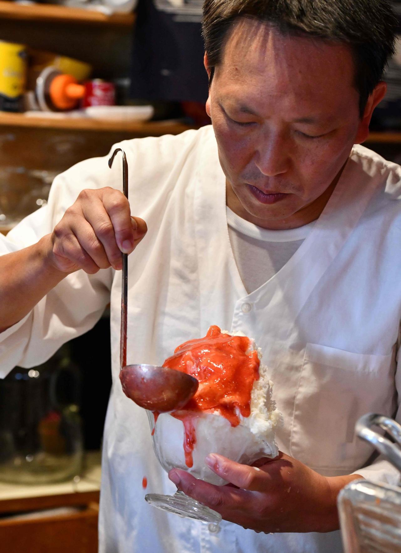 นายยามาโมโตะ รับช่วงทำน้ำแข็งธรรมชาติจากบิดาเมื่อ 13 ปีก่อน ยุคนั้นน้ำแข็งธรรมชาติราคาถูกแค่ 200 เยนต่อลัง และไม่สามารถสู้ราคาน้ำแข็งโรงงานซึ่งมีต้นทุนต่ำและผลิตได้ตลอดเวลา เขาจึงหาทางเพิ่มมูลค่าให้น้ำแข็งธรรมชาติ โดยพยายามคิดค้นคากิโกริสูตรพิเศษขึ้นมา ใช้เวลาค้นคว้าวิจัยหลายเดือน ต้องทิ้งน้ำแข็งไปหลายตัน แต่ขณะนี้สามารถขายคากิโกริได้ราคาสูงถึงถ้วยละ 800 เยน (ราว 240 บาท) และขายน้ำแข็งธรรมชาติได้ในราคาลังละ 9,000 เยน (ราว 2,700 บาท) ซึ่งสูงกว่าสมัยก่อนถึง 6 เท่า