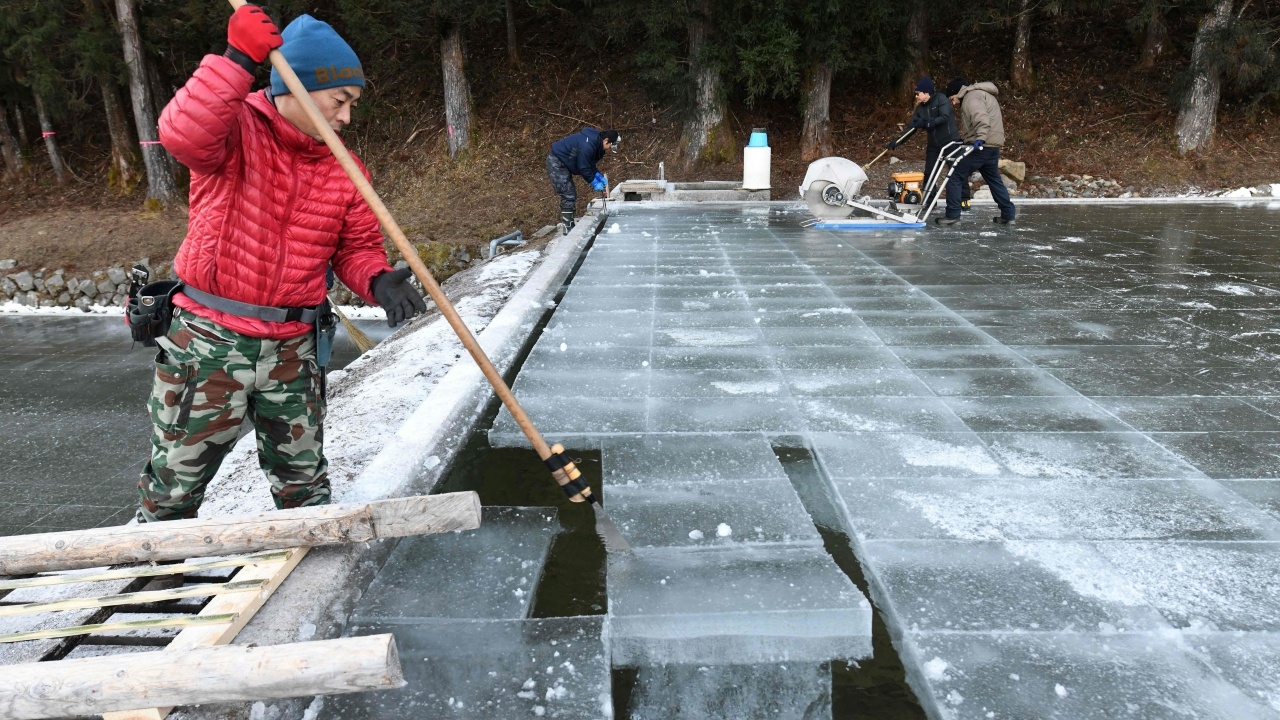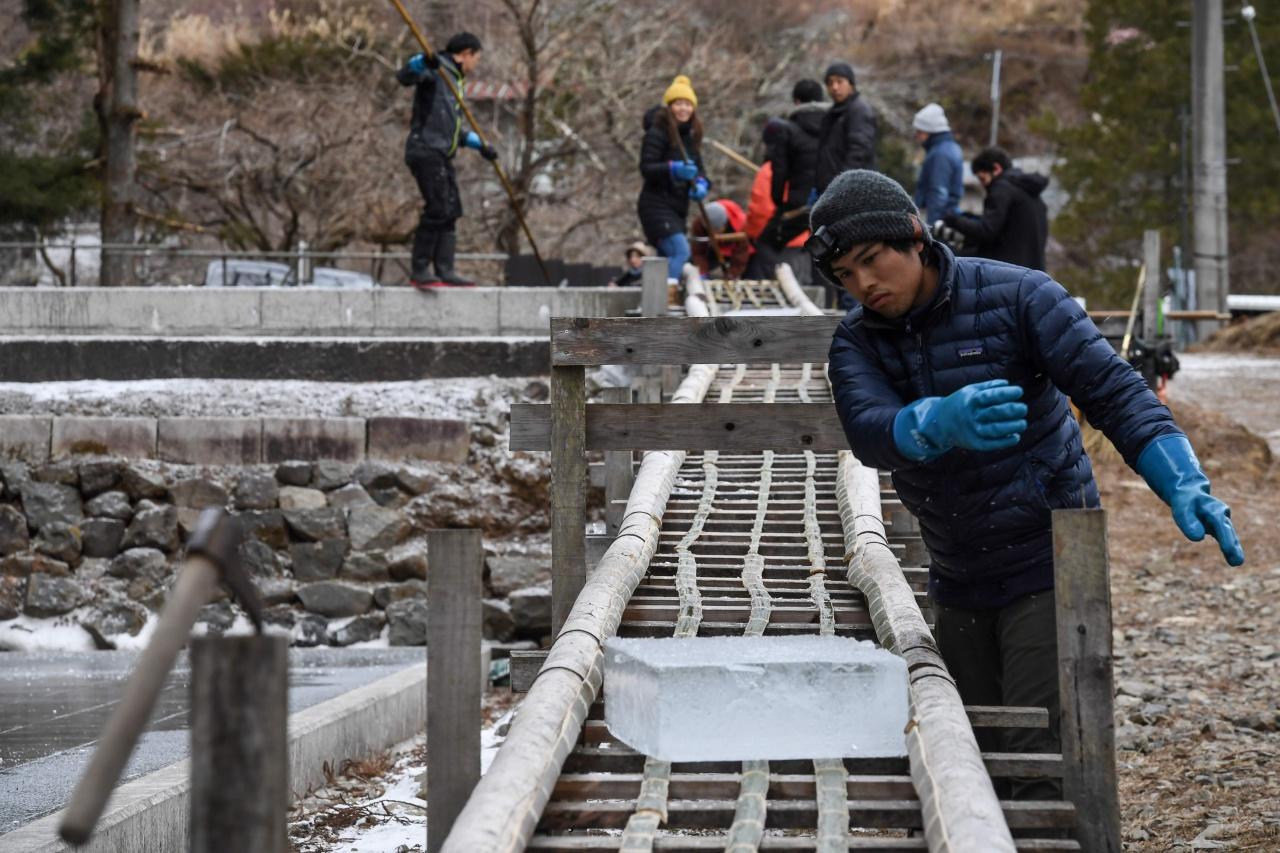 กรรมวิธีผลิตน้ำแข็งธรรมชาติยุ่งยากใช้เวลานานหลายเดือน เริ่มจากเตรียมบ่อขนาดใหญ่ตั้งแต่ฤดูใบไม้ร่วง จากนั้นถ่ายน้ำเข้าบ่อในฤดูใบไม้ผลิ ก่อนรอให้เป็นน้ำแข็งในฤดูหนาว เกษตรกรต้องเฝ้าดูแลใกล้ชิดไม่ให้ฝนตกใส่ และคอยตักหิมะกับเศษใบไม้ออกตลอดเวลา ยามาโมโตะ เผยว่าเคยตักหิมะจากผิวหน้าบ่อน้ำแข็งถึง 16 ชั่วโมงโดยไม่หยุดพักมาแล้ว