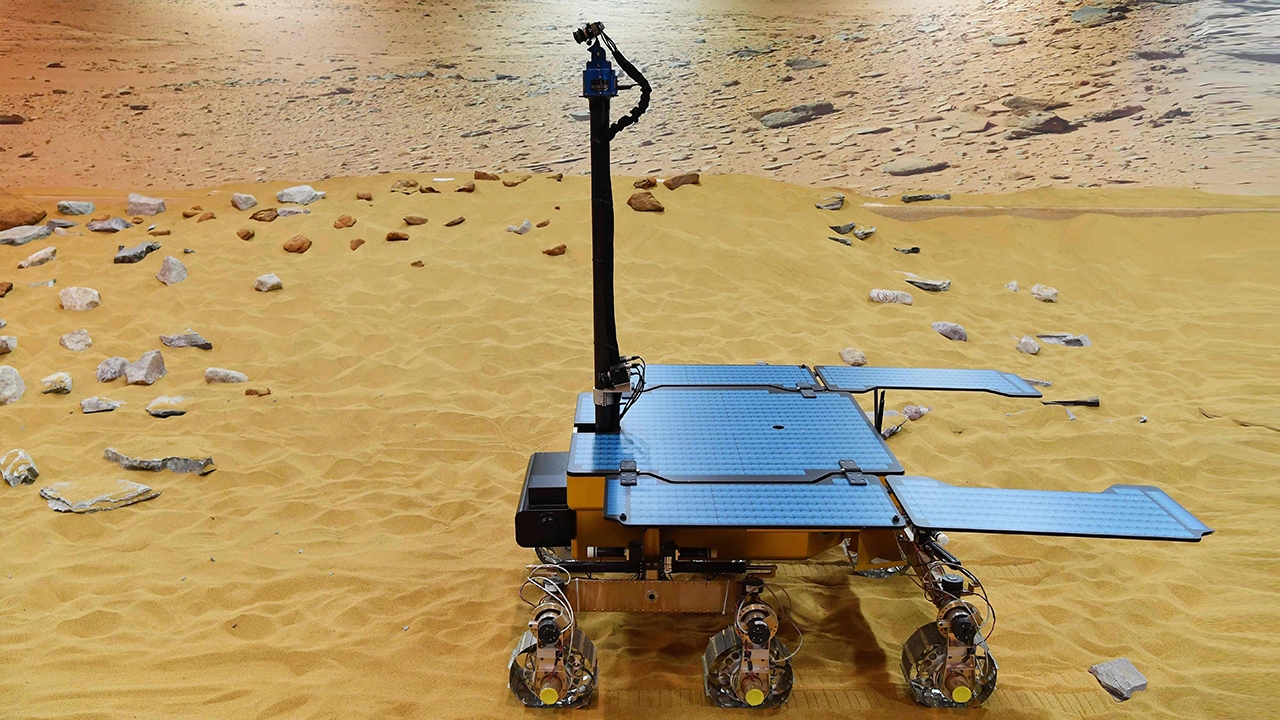 ต้นแบบของรถโรซาลินด์ แฟรงคลิน เอ็กโซมาร์ส (Rosalind Franklin ExoMars rover) ทดลองการทำงานที่บริษัทแอร์บัสหรือบริษัทผลิตอากาศยานและระบบป้องกันประเทศของยุโรปในเมืองสตีเวนิจ ตั้งอยู่ทางตอนเหนือของกรุงลอนดอนแห่งอังกฤษ ซึ่งภารกิจเอ็กโซมาร์สเผชิญปัญหาระบบร่มชูชีพ ทำให้ต้องเลื่อนกำหนดการเดินทางออกไปในช่วงฤดูร้อนปี พ.ศ.2563.