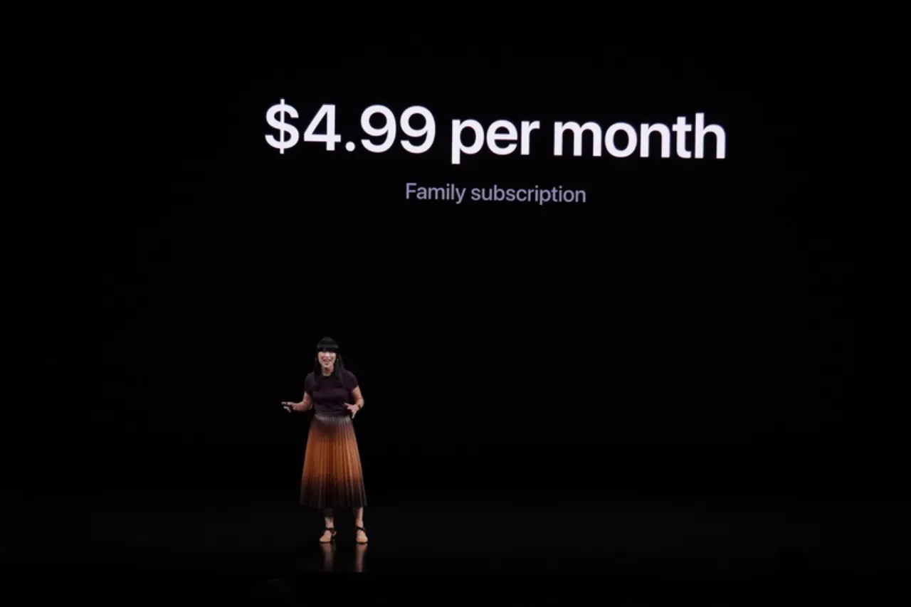 แอปเปิลเปิดตัว Apple TV+ บริการวิดีโอสตรีมมิ่งของตัวเอง และบริการแพลตฟอร์มเล่นเกม Apple Arcade คิดค่าบริการรายเดือนที่ 4.99 ดอลลาร์สหรัฐฯ ทั้งคู่