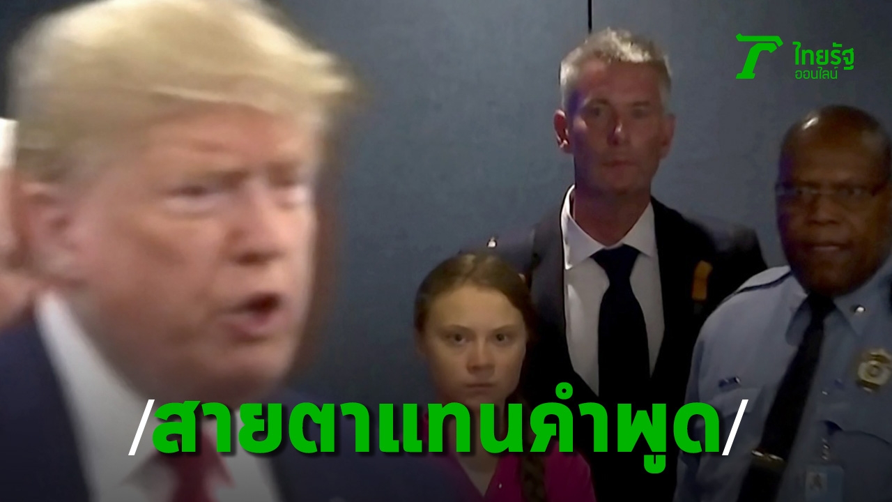 เกรตา ธันเบิร์ก เด็กสาวนักเคลื่อนไหวต่อสู้ภาวะโลกร้อน ไม่พลาดรอเจอทรัมป์ ขณะอยู่ในอาคารเดียวกันที่ยูเอ็น ถึงกับจ้องตาเขม็งขณะทรัมป์เดินผ่านไปคุยกับนักข่าว