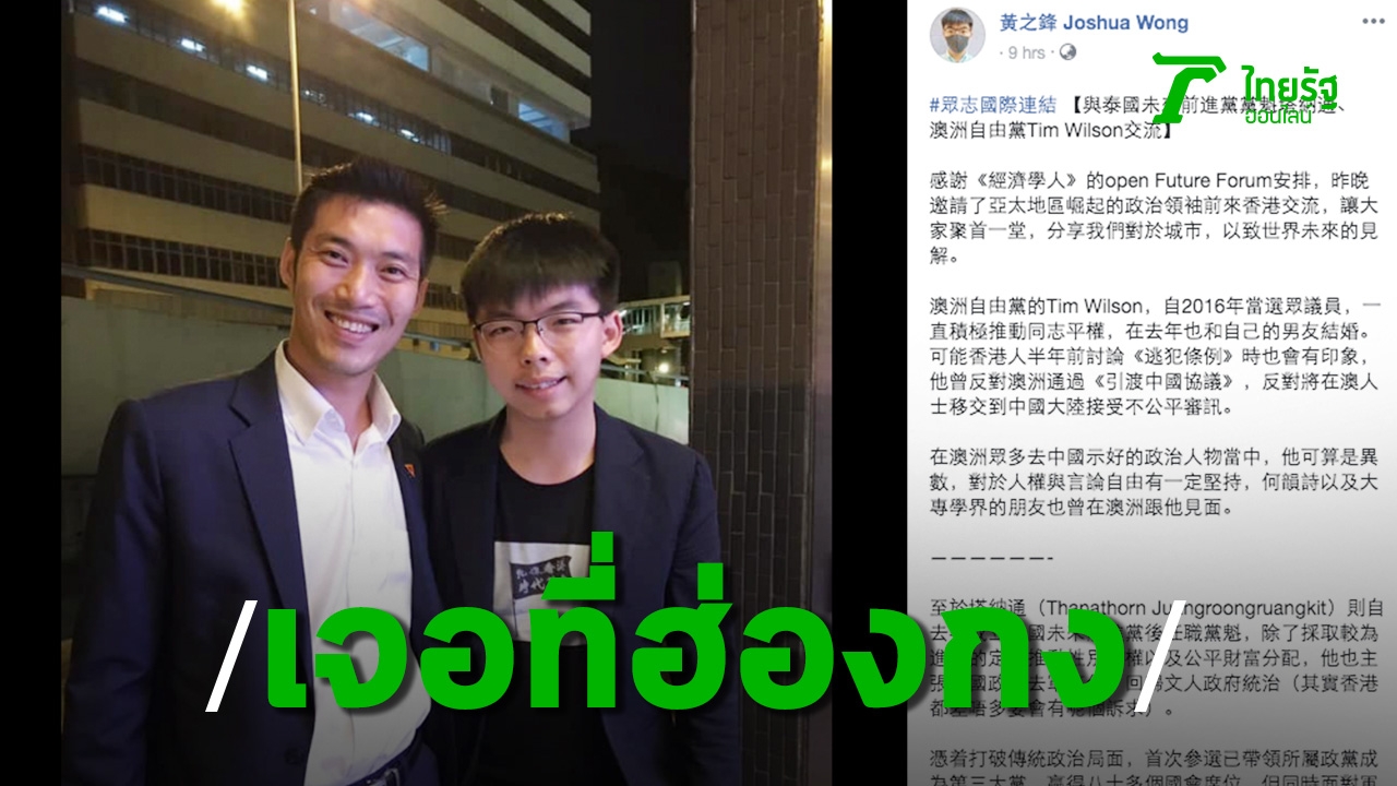 โจชัว หว่อง แกนนำเรียกร้องประชาธิปไตยในฮ่องกง โพสต์รูปถ่ายคู่กับนาย ธนาธร จึงรุ่งเรืองกิจ บนเฟซบุ๊ก โดยเจ้าตัวหวังจะว่าจะได้เดินทางไปเยือนประเทศไทยอีก