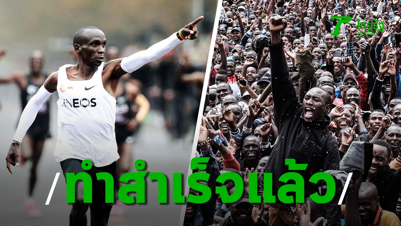 ชาวเคนยาเฮลั่น ‘อีลิอุด คิปโชเก้‘ นักวิ่งปอดเหล็กแห่งเคนยา ทลายขีดจำกัดของมนุษย์ สร้างประวัติศาสตร์ วิ่งระยะมาราธอน โดยใช้เวลาต่ำกว่า 2 ชม. ได้สำเร็จเป็นคนแรก